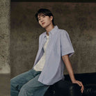 - Stay effortlessly polished with the Men’s Relaxed Fit Cotton Oxford Short Sleeve Shirt from the Korea Collection. Made from 100% cotton oxford fabric, this shirt offers a breathable, structured feel with a soft touch thanks to its garment-washed finish. The relaxed fit, short sleeves, and full button-front opening make it a versatile choice for casual and semi-formal settings. Designed with clean lines and timeless appeal, this shirt reflects the understated elegance of modern Korean fashion..