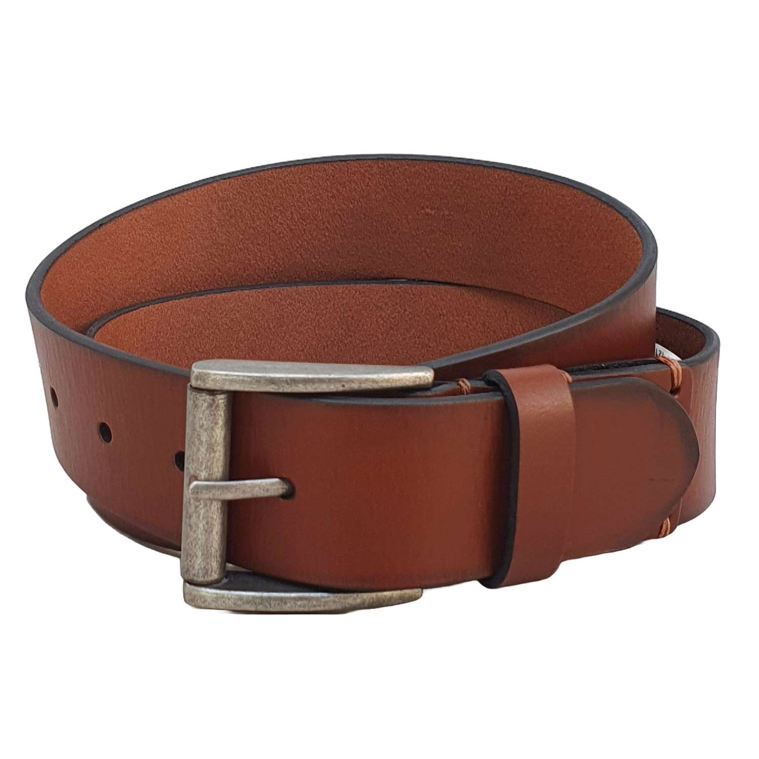 Men's Leather Dress Belt with Metal Loop Closure - Yellow