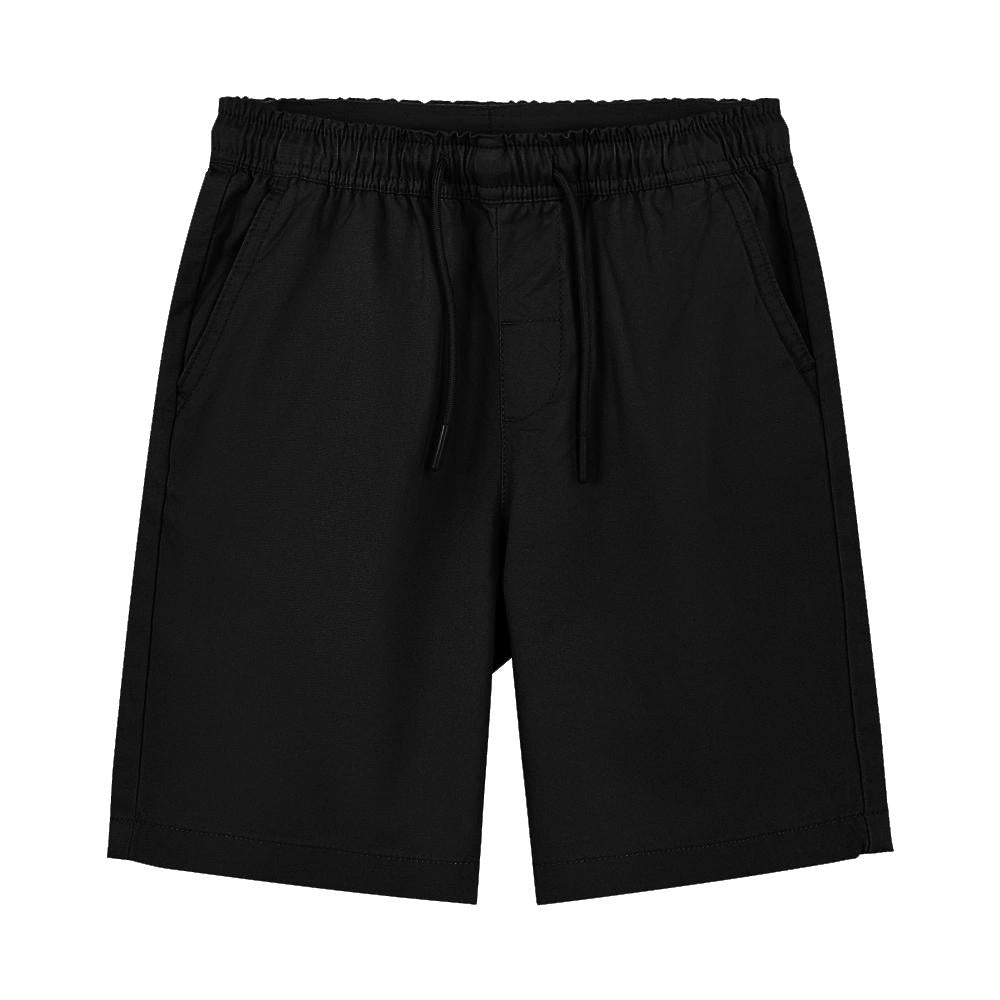 Junior Cotton Twill Mid Rise Comfort Fit Elastic Waist Shorts - Black