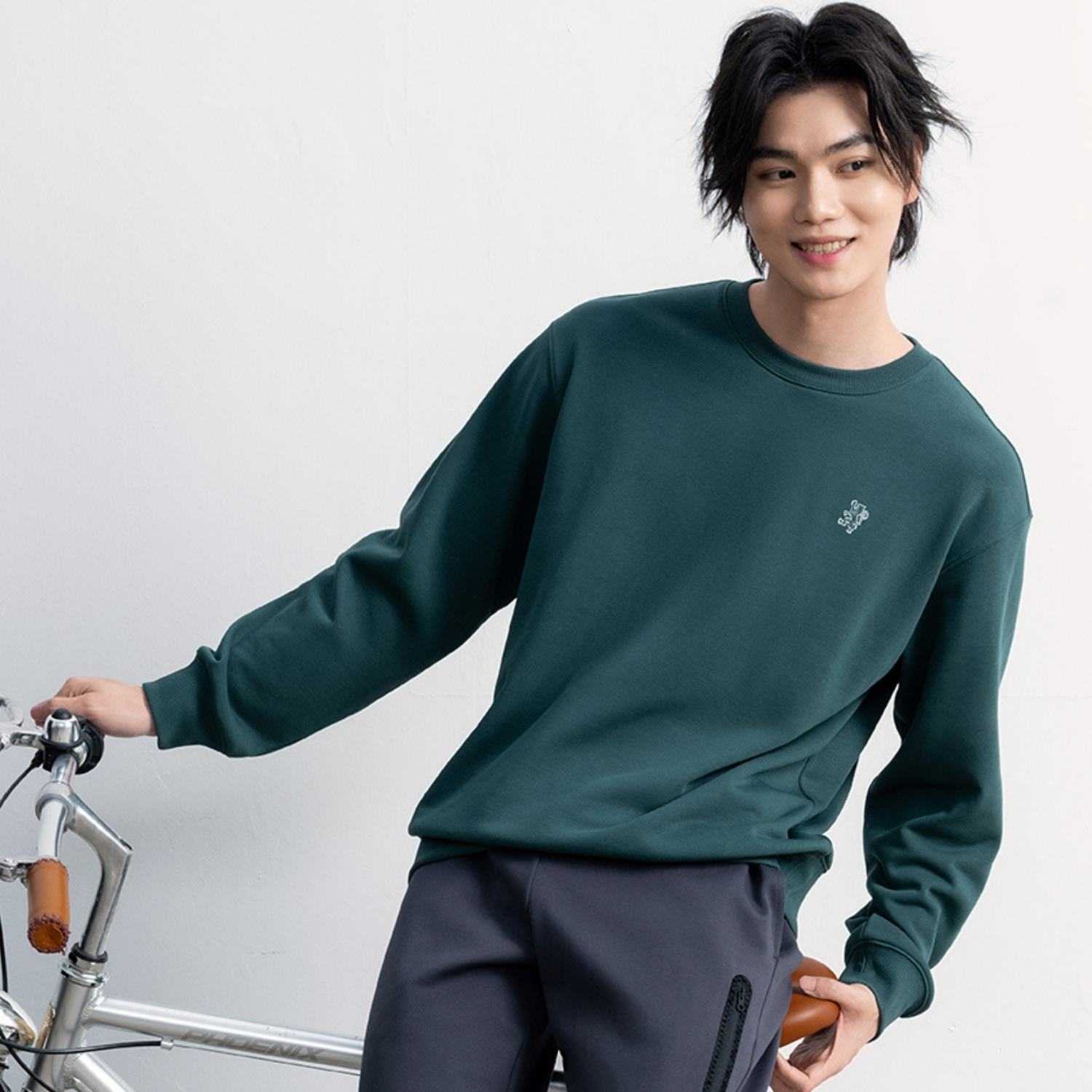 - A foundational piece for any wardrobe, this classic sweatshirt is designed for ultimate comfort and versatility. It features a relaxed fit for easy layering, a timeless crew neck, and comfortable long sleeves. Crafted from a premium, heavyweight 305gm/m² cotton-blend French terry, this pullover provides superior warmth and an exceptionally soft feel. The piece-dyed reactive finish ensures a deep, long-lasting color, making it the perfect go-to for casual, everyday wear.