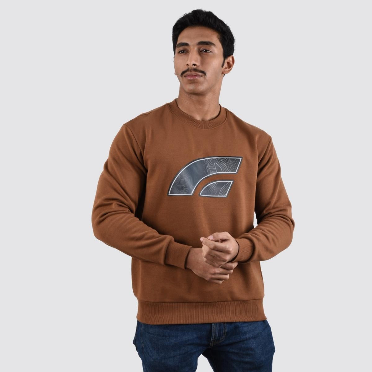 - This is a comfortable, relaxed-fit long-sleeve crew neck pullover, made from a bonded polyester and cotton fleece fabric. It features a printed design and offers warmth and a soft feel. .