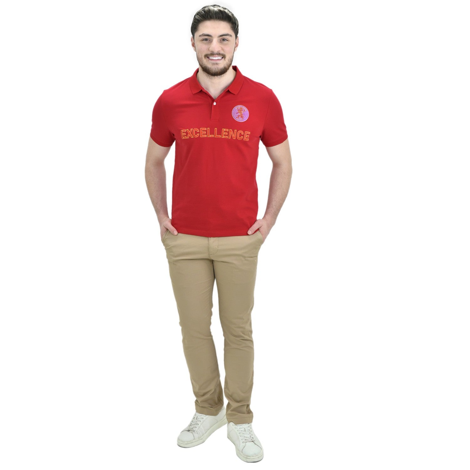 - This polo tshirt is made from 97% cotton and 3% Lycra It features a flat knit collar for a clean, classic look, short sleeves, and a slim fit for a modern look ..