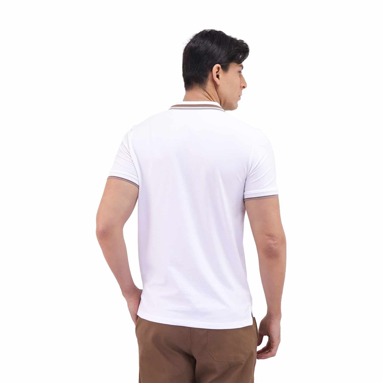 - This polo tshirt is made from 97% cotton and 3% Lycra It features a flat knit collar for a clean, classic look, short sleeves, and a slim fit for a modern look ..