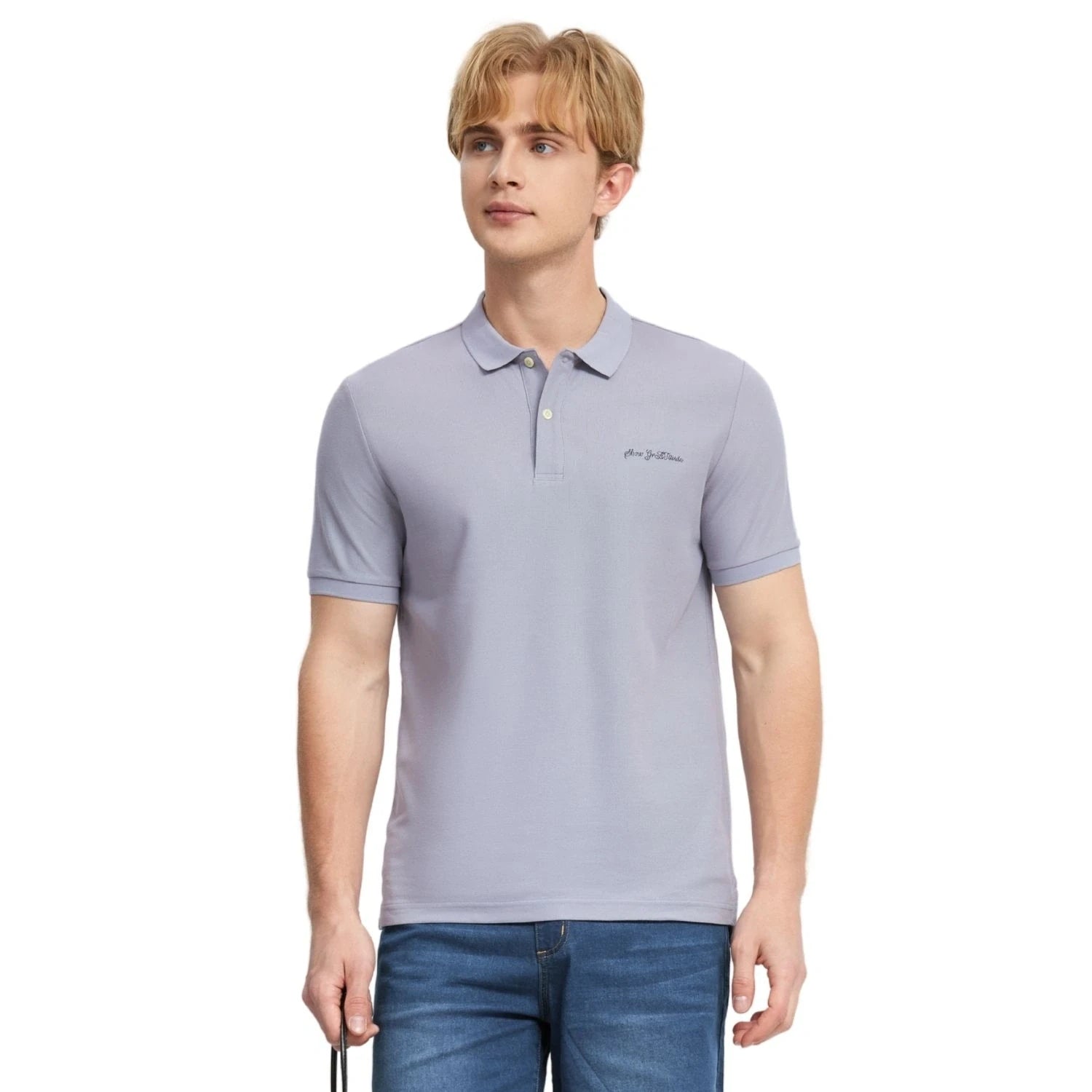 - A comfortable and stylish men's polo with a modern tapered fit, made from a breathable cotton-polyester pique blend. It features an embroidered design .