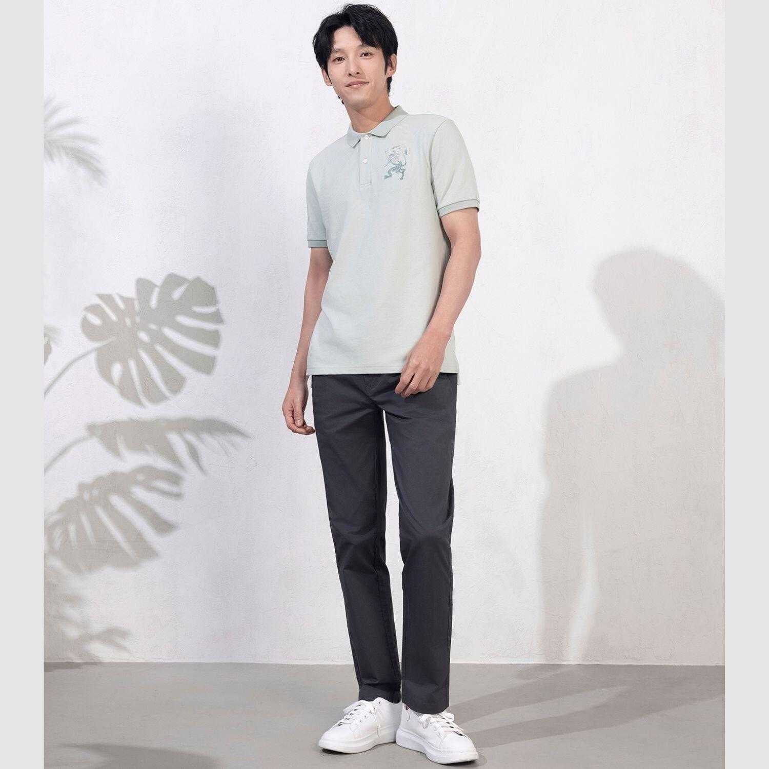 This polo T-shirt is made from 97% cotton and 3% Lycra, offering breathable comfort with added stretch. It features a flat-knit collar for a clean, classic look, short sleeves, and a slim fit for a modern silhouette.