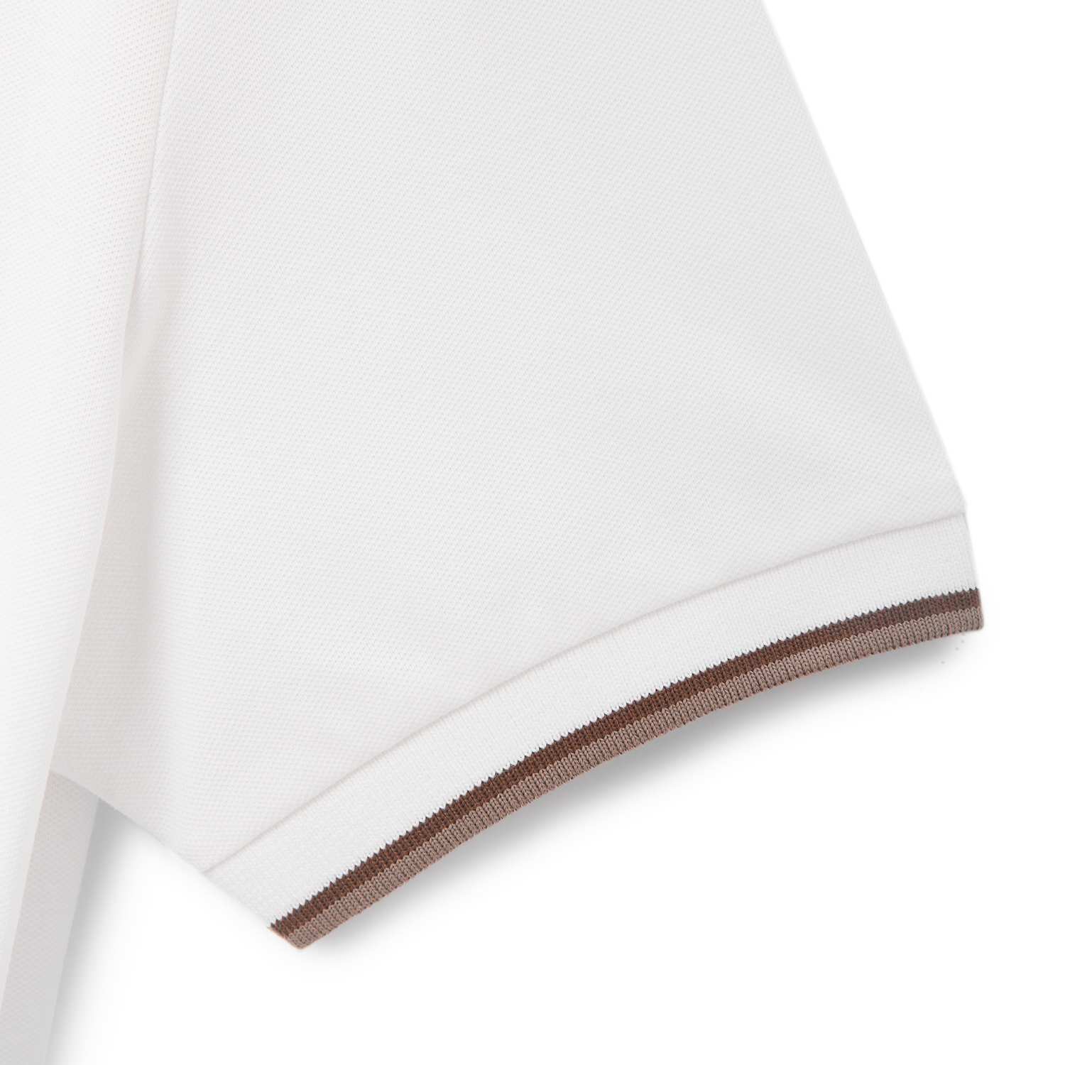 - This polo shirt is made from a pique knit fabric composed of 97% cotton and 3% Lycra (elastane) It features a flat knit collar, short sleeves, and a slim fit.