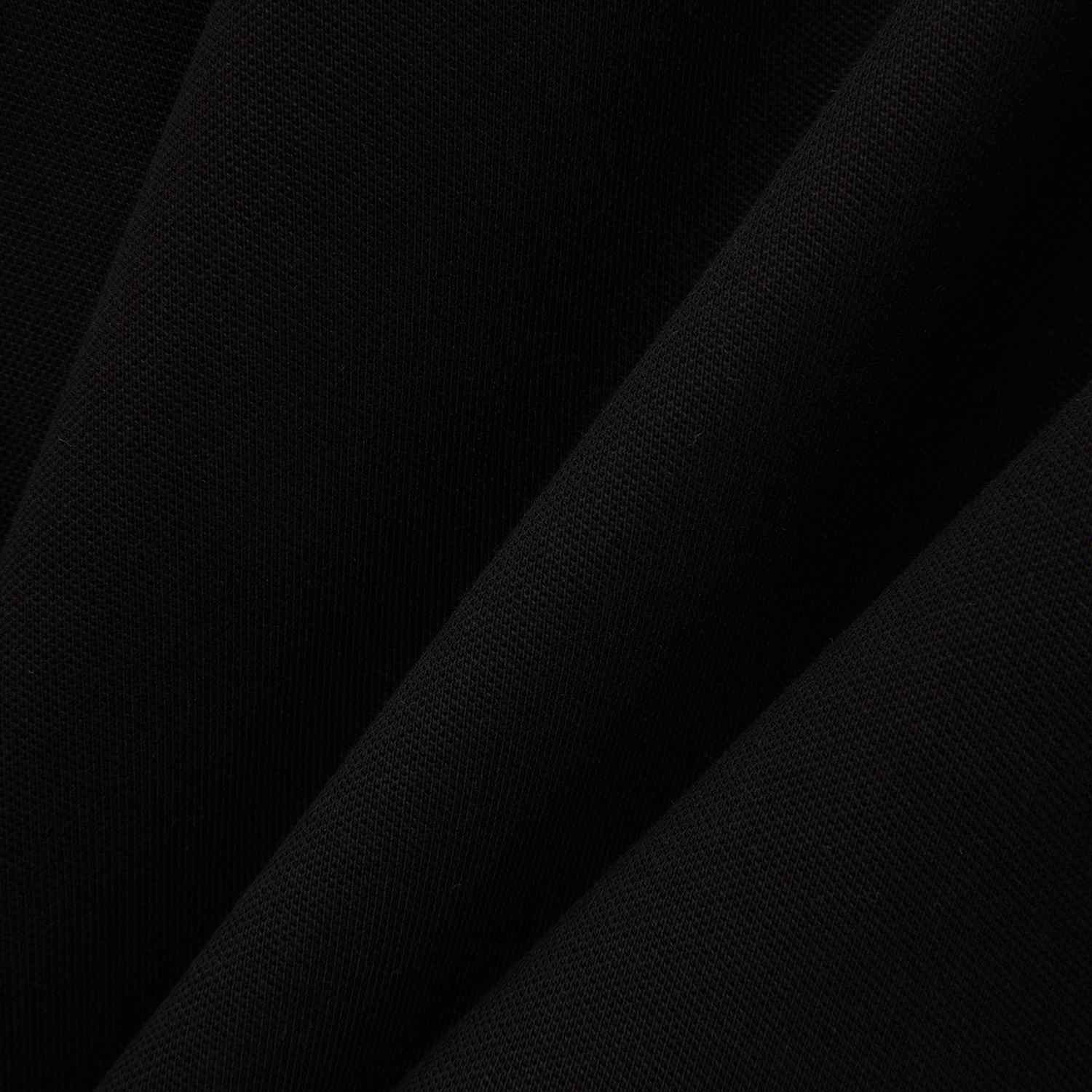 - This polo shirt is made from a pique knit fabric composed of 97% cotton and 3% Lycra (elastane) It features a flat knit collar, short sleeves, and a slim fit.