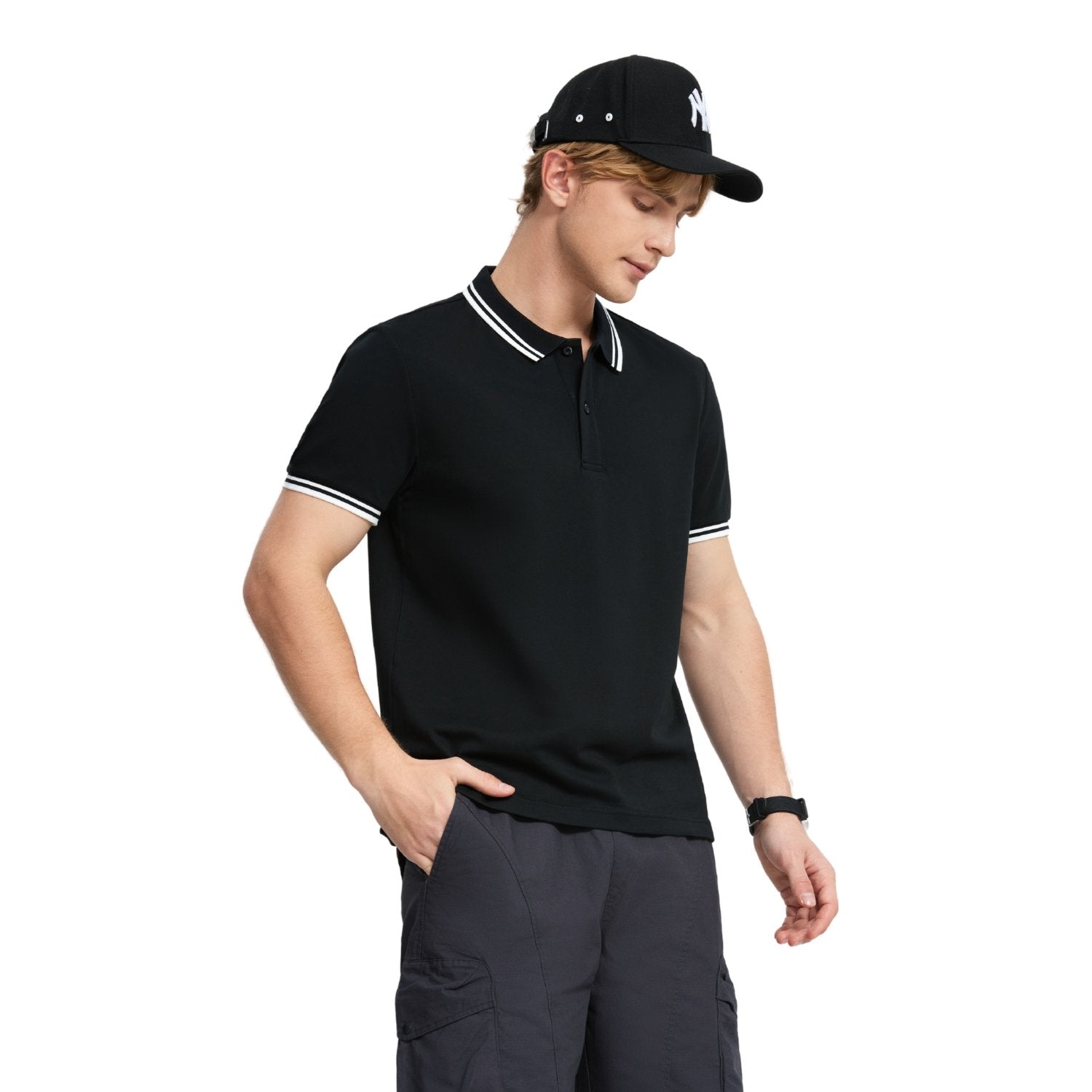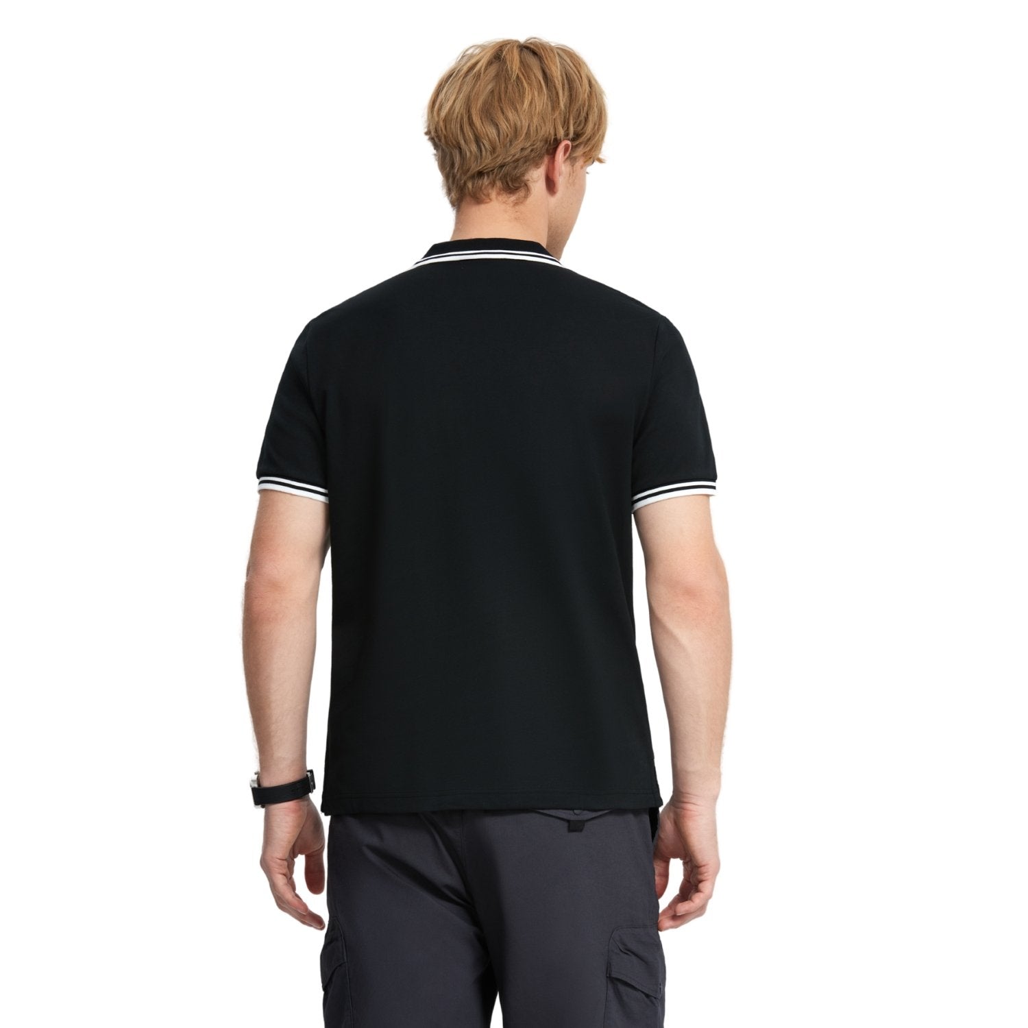 - A comfortable and stylish men's polo with a modern Regular fit, made from a breathable cotton-polyester pique blend. It features an embroidered design .