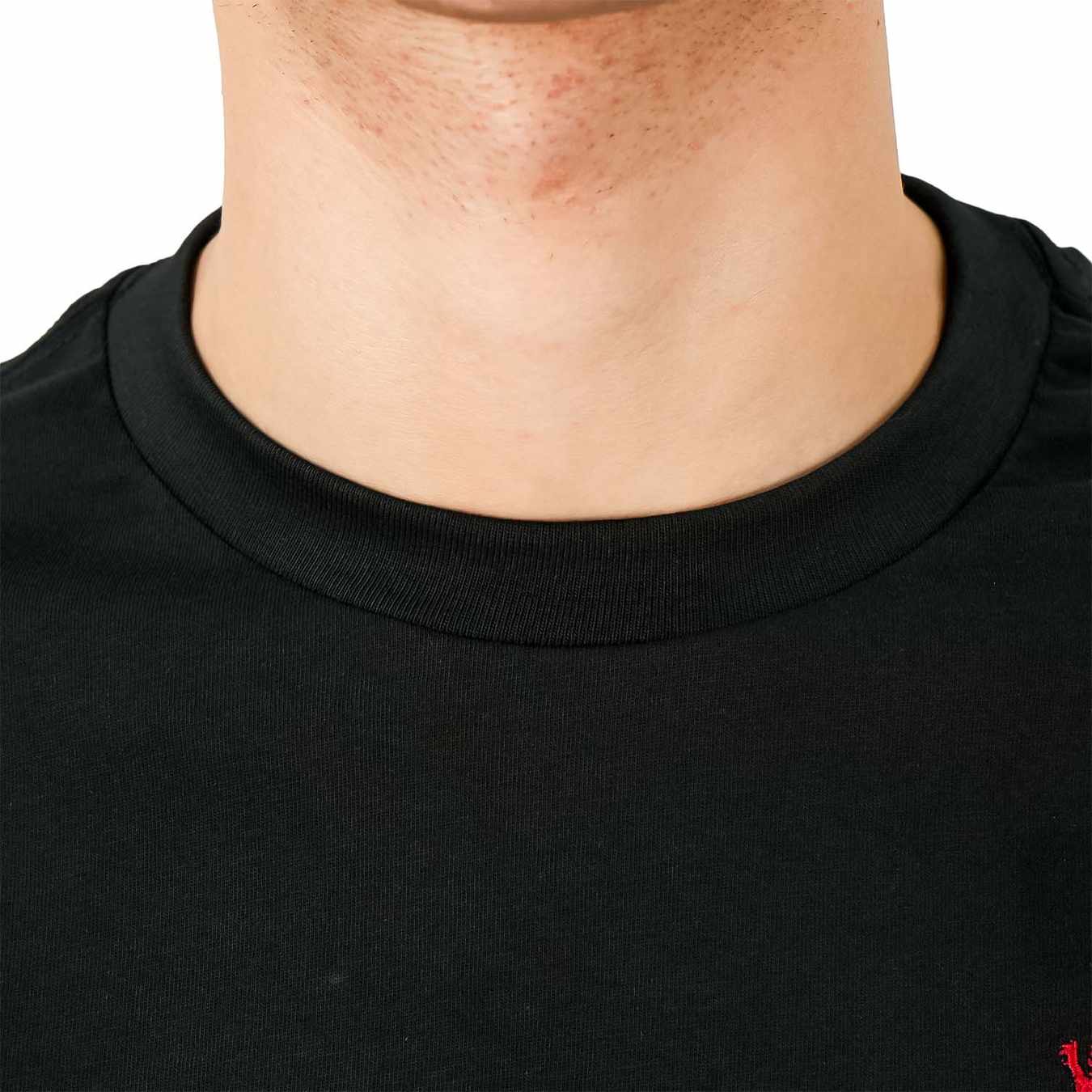 - The T-shirt is designed with a Slim Fit, offering a more modern and contoured silhouette compared to a classic or regular fit..