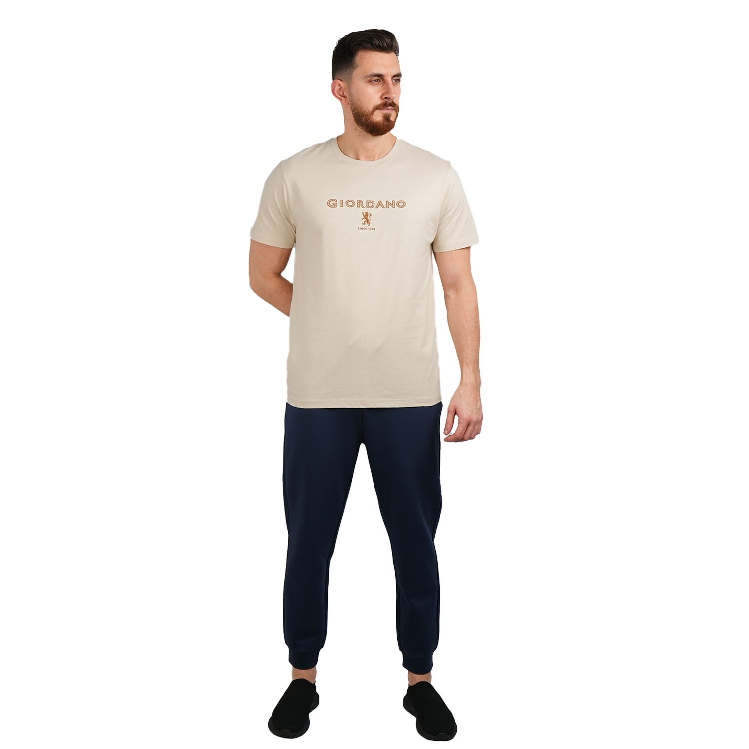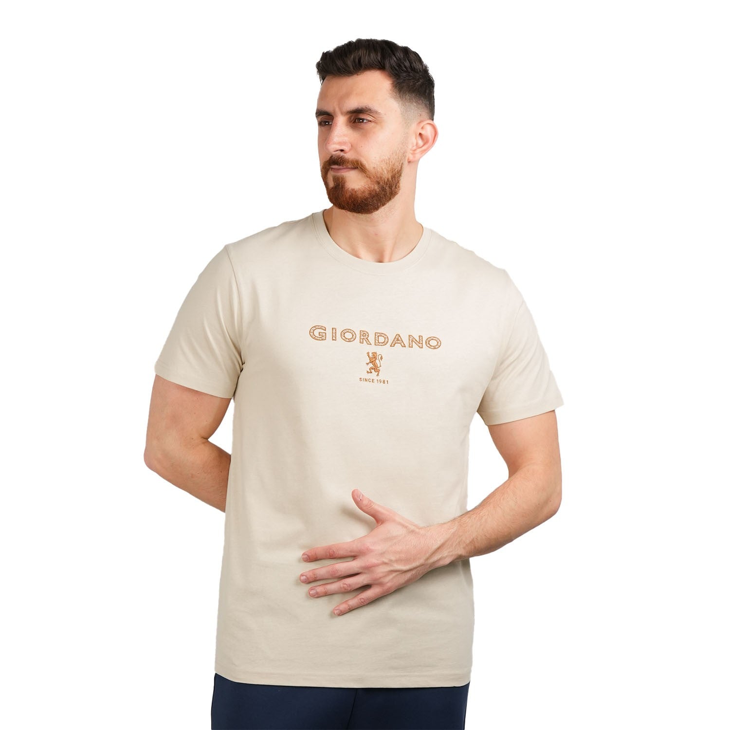 - A men's slim-fit t-shirt crafted from soft cotton jersey, featuring a crew neck, short sleeves, and a printed design. Available in multiple colors, perfect for everyday casual wear..
