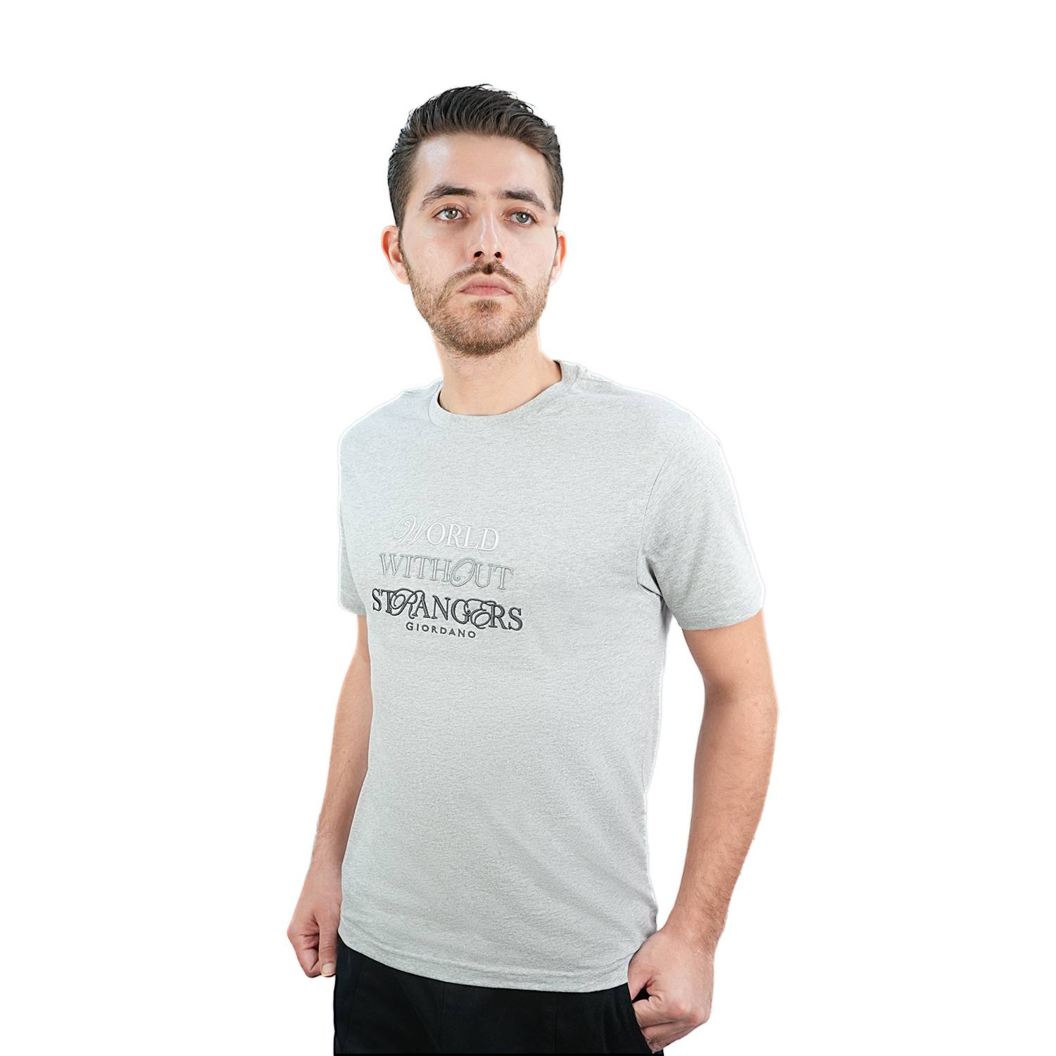 - Make a statement with our World Without Strangers Men's print tee. This slim fit tee features a bold and inspiring message printed on high-quality cotton jersey. The crew neck design and short sleeves offer a classic and comfortable fit, perfect for everyday wear. Express your vision for a more connected world with this stylish and meaningful graphic tee. Pair it with your favorite jeans or chinos for a casual and impactful look..