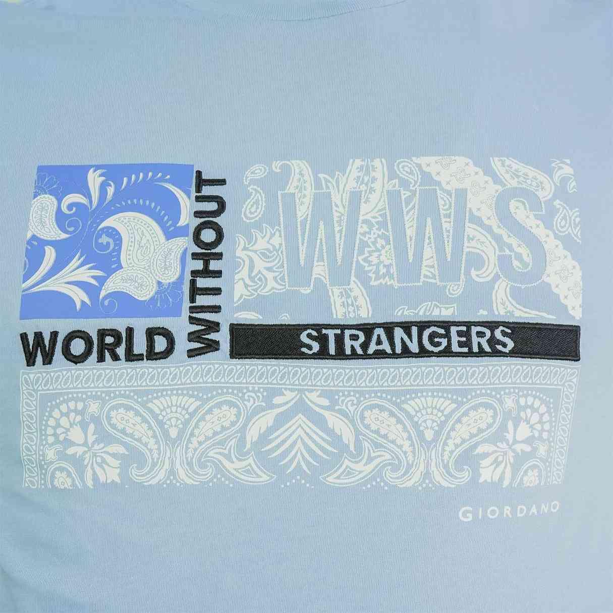 - Make a statement with our World Without Strangers Men's print tee. This slim fit tee features a bold and inspiring message printed on high-quality cotton jersey. The crew neck design and short sleeves offer a classic and comfortable fit, perfect for everyday wear. Express your vision for a more connected world with this stylish and meaningful graphic tee. Pair it with your favorite jeans or chinos for a casual and impactful look..