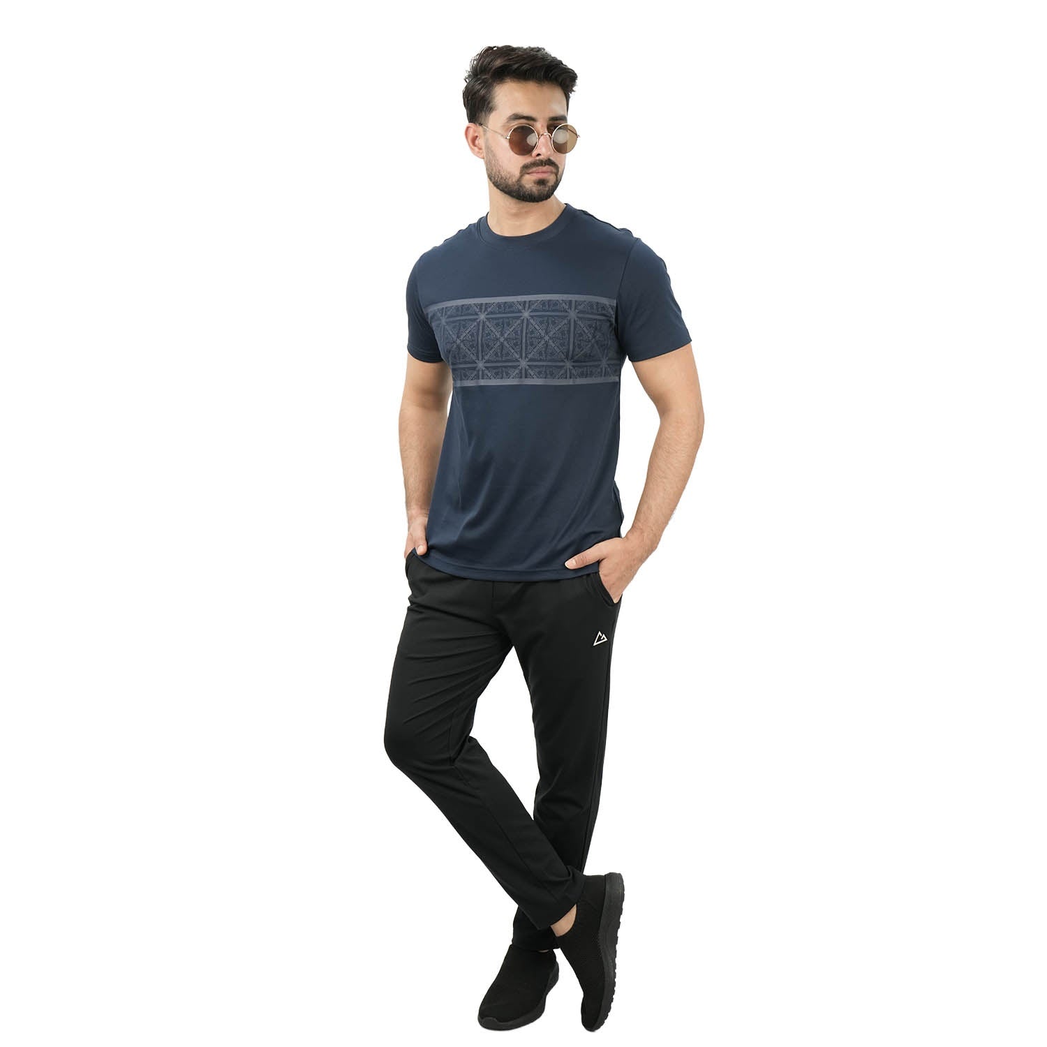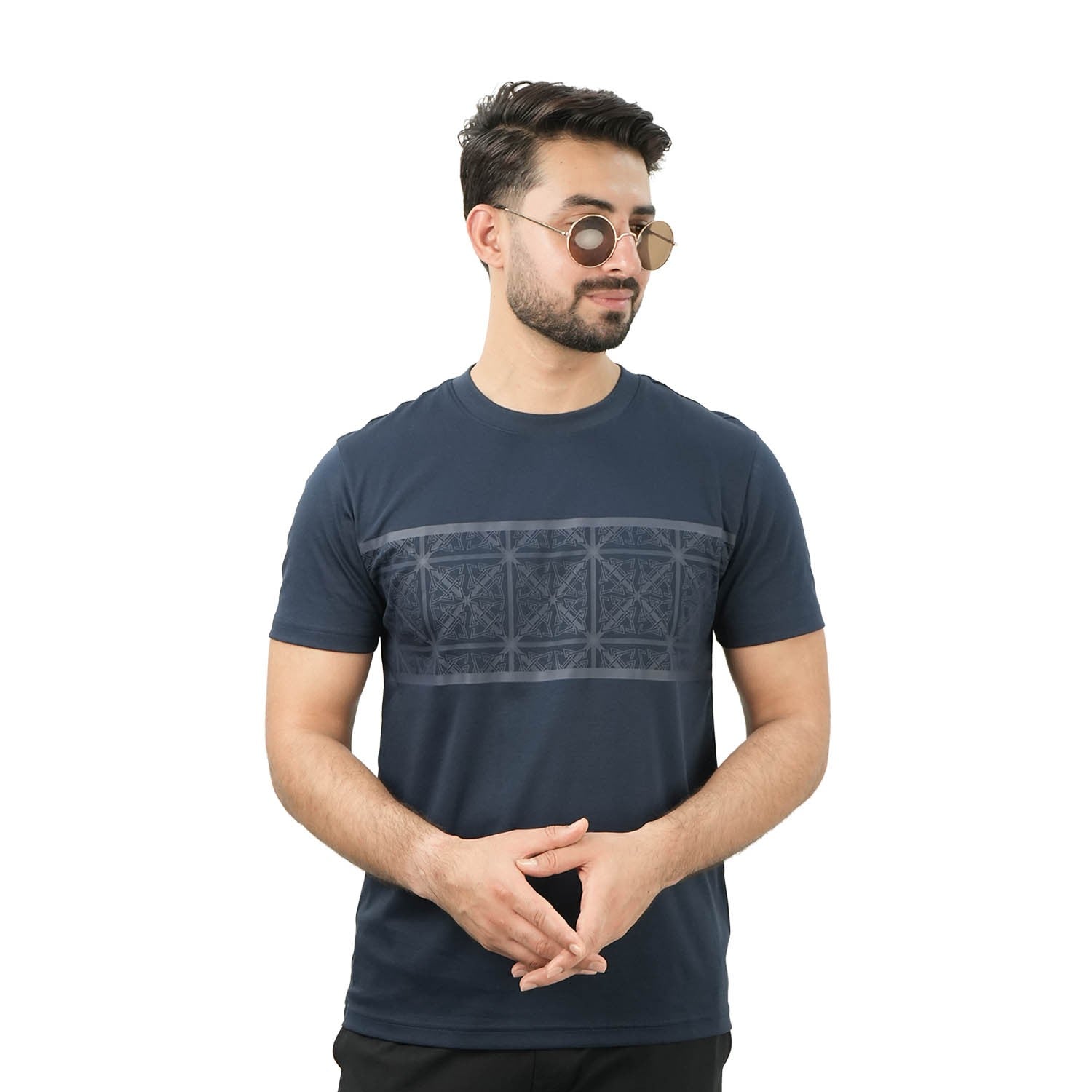 Men's Cotton Crew Neck Slim Print Tee - Blue