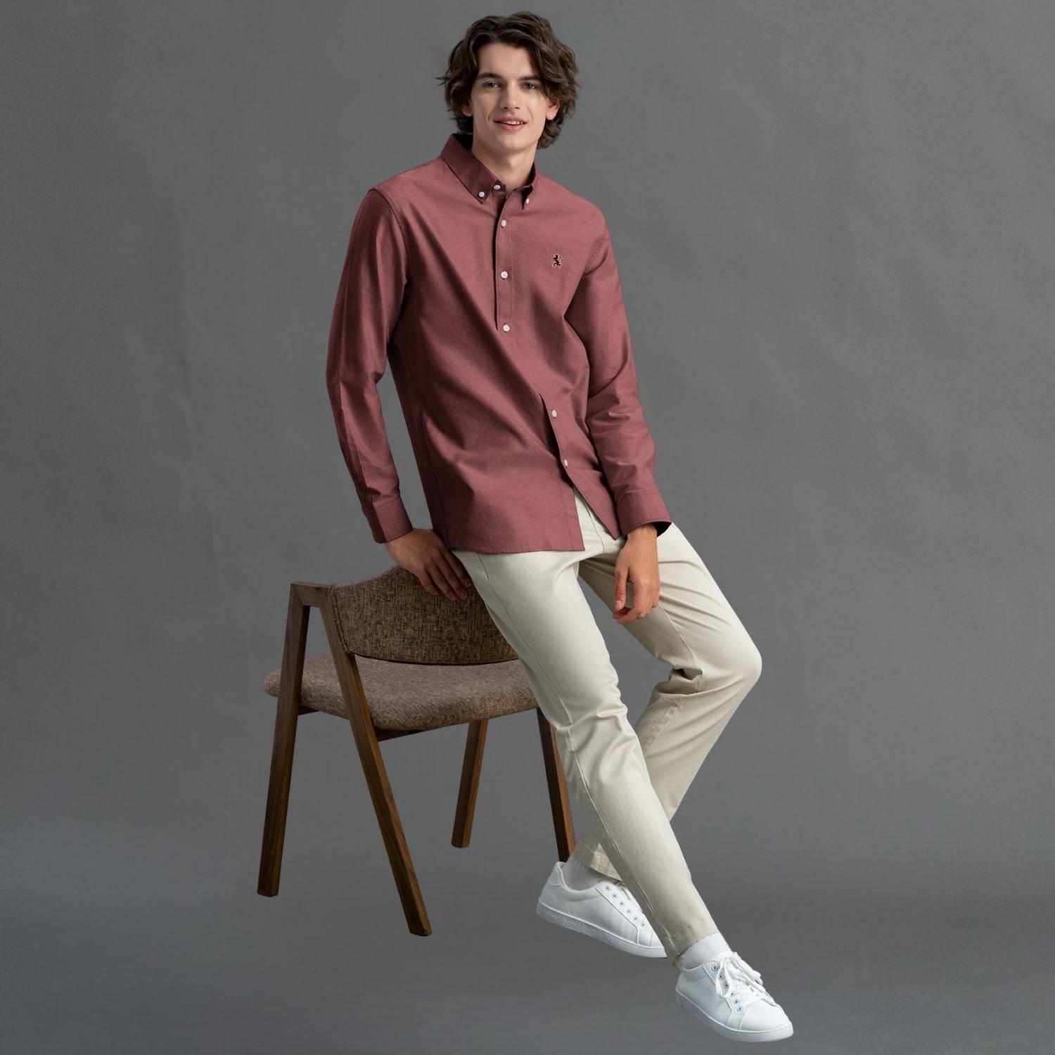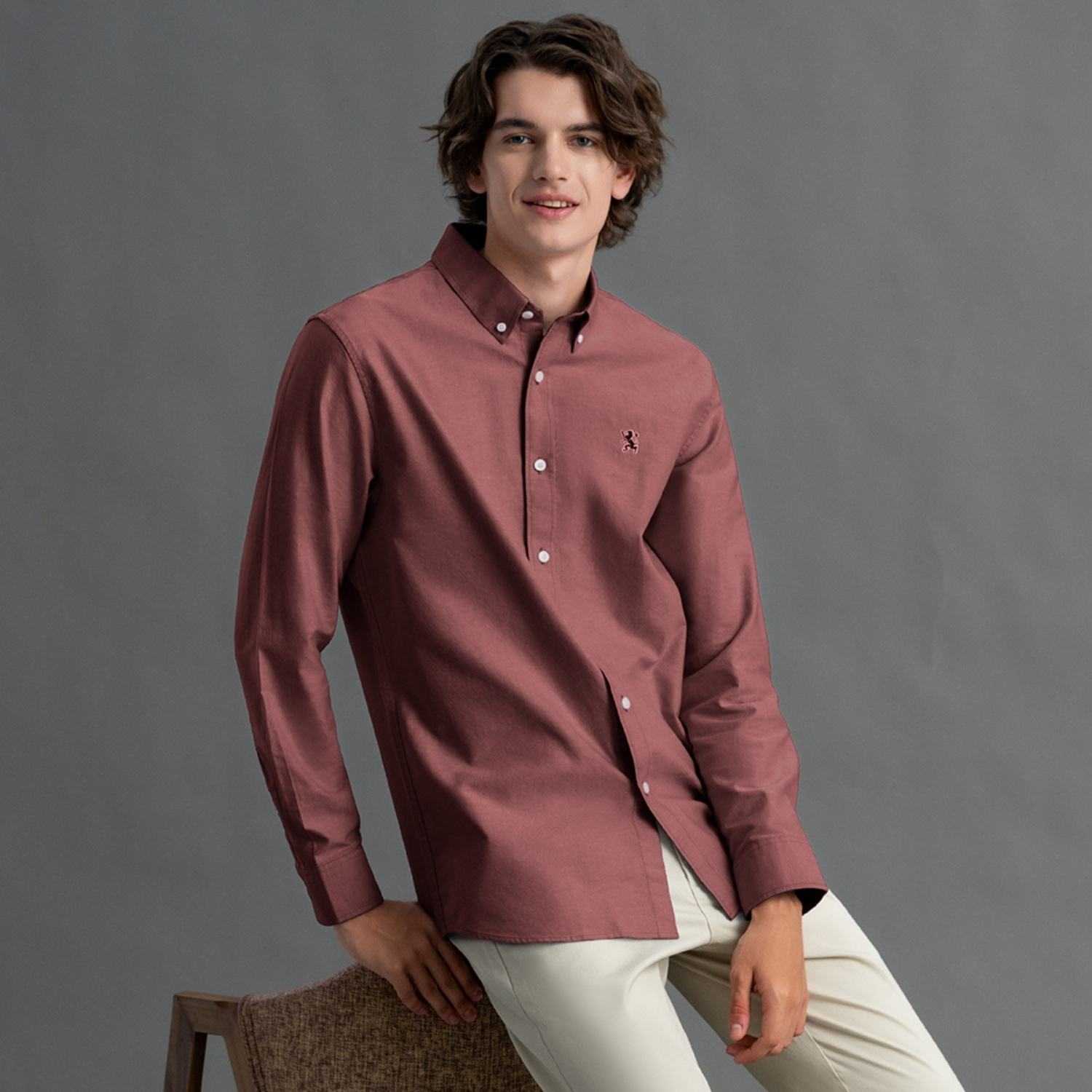 - Contrast Lion embroidered detail LHS Chest..100% cotton Oxford shirt, button-down front, long sleeves, slim fit, embroidered detail, garment washed for softness...