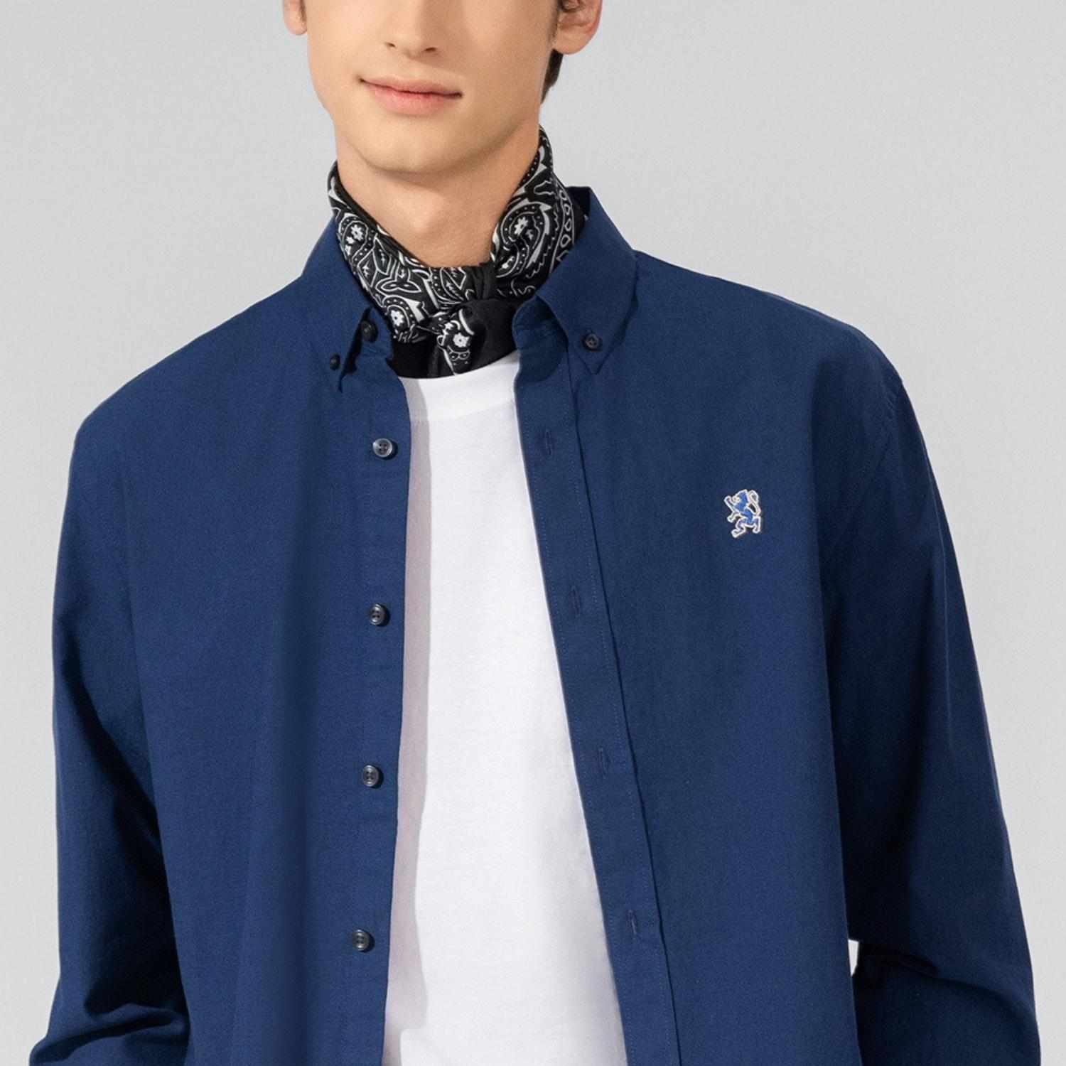 - Contrast Lion embroidered detail LHS Chest..100% cotton Oxford shirt, button-down front, long sleeves, slim fit, embroidered detail, garment washed for softness...
