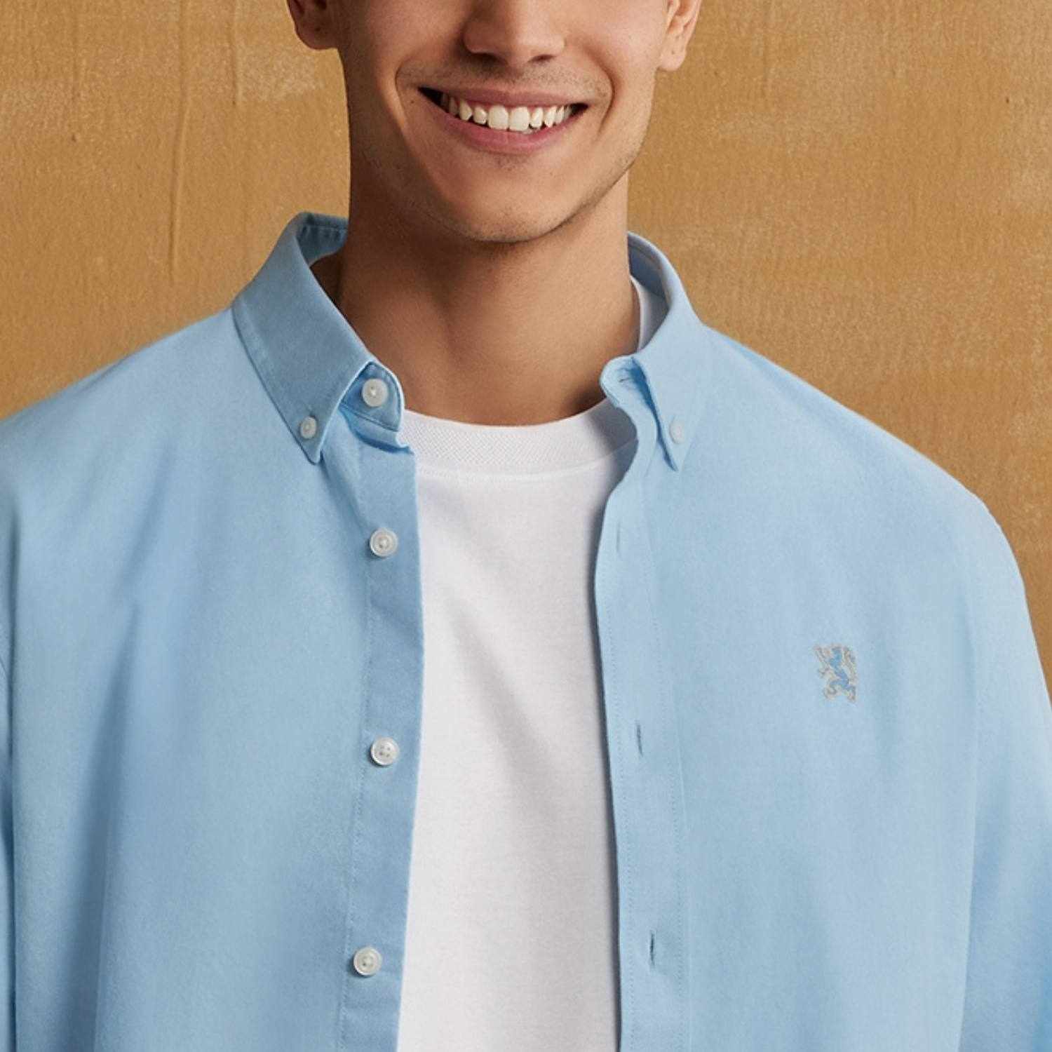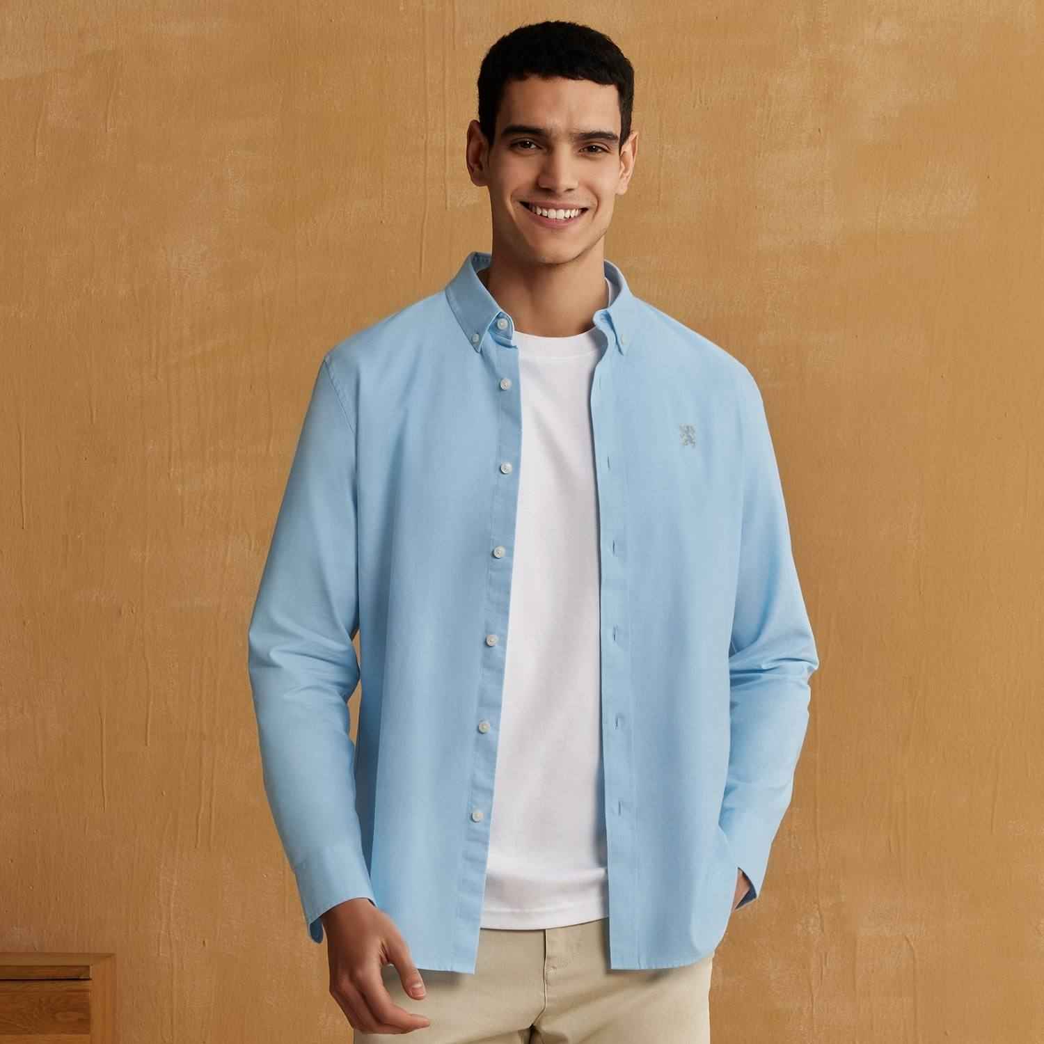- Contrast Lion embroidered detail LHS Chest..100% cotton Oxford shirt, button-down front, long sleeves, slim fit, embroidered detail, garment washed for softness...