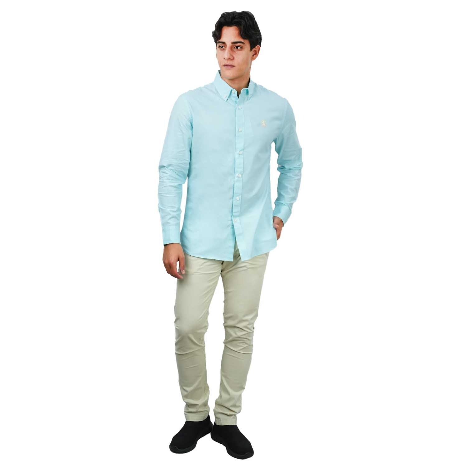 - Contrast Lion embroidered detail LHS Chest..100% cotton Oxford shirt, button-down front, long sleeves, slim fit, embroidered detail, garment washed for softness...