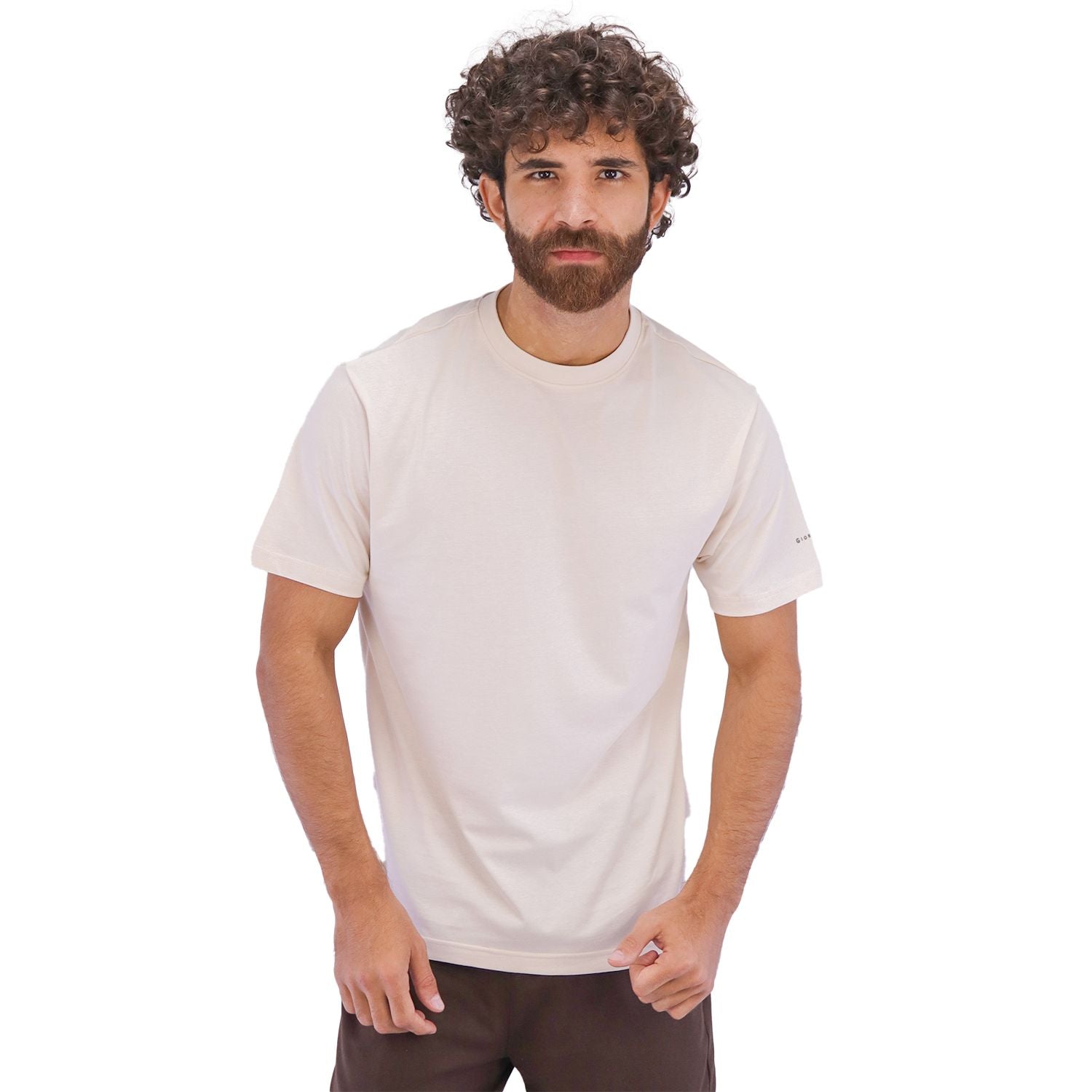 - This t-shirt is made from 100% cotton single jersey fabric, known for its soft and comfortable feel. It features a classic crew neck and short sleeves.