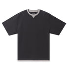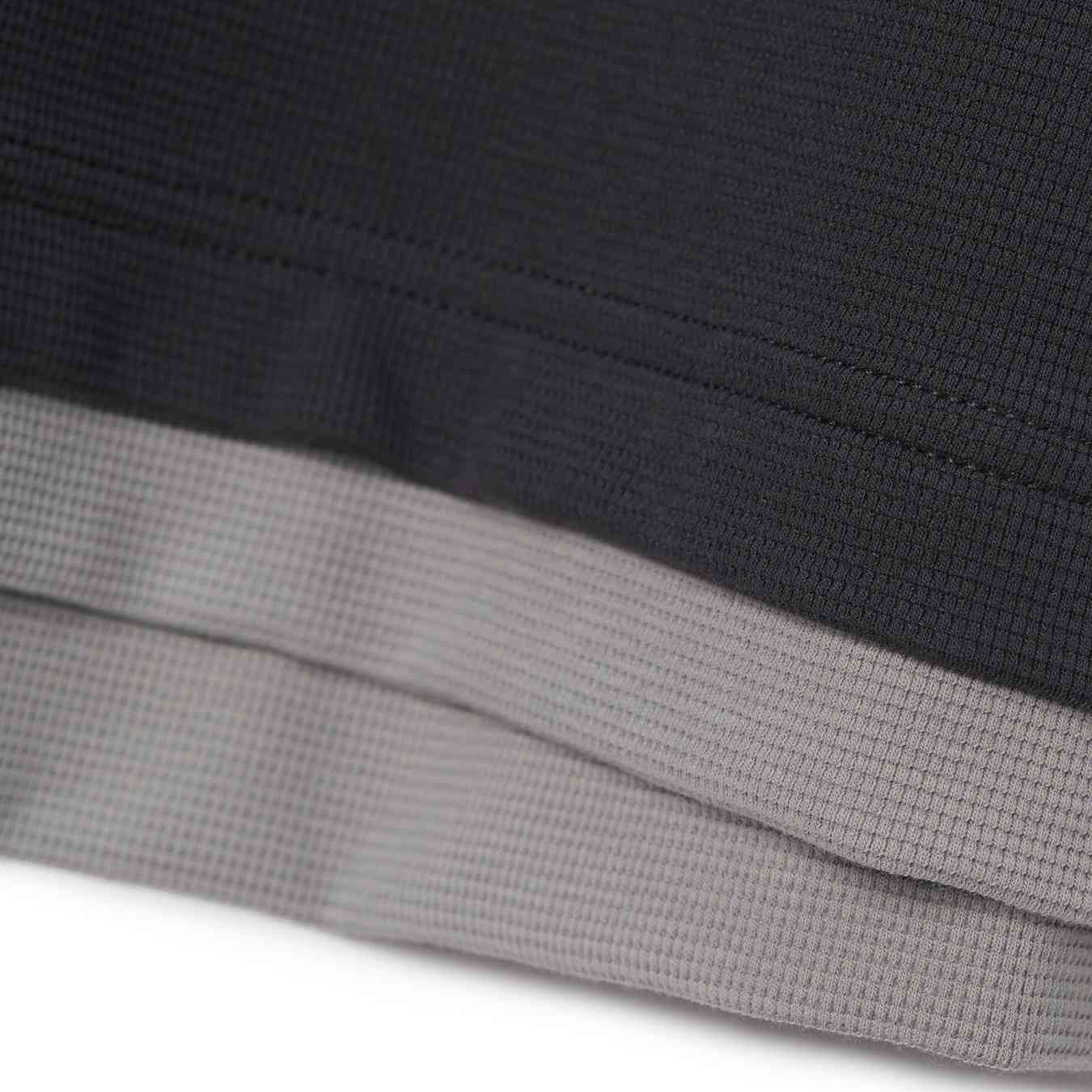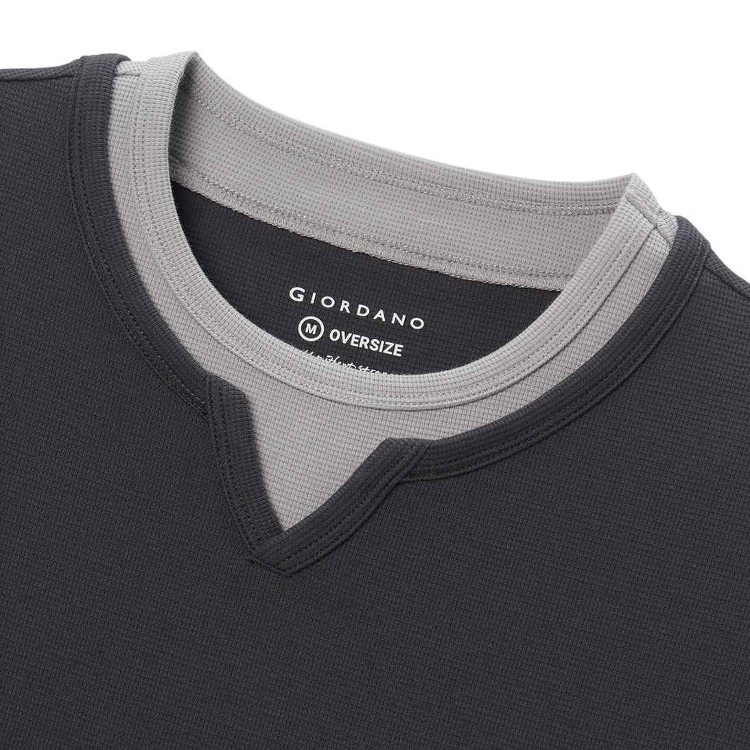- This is a waffle knit t-shirt made from a blend of polyester and cotton. It features a crew neck, short sleeves, and an oversized fit.