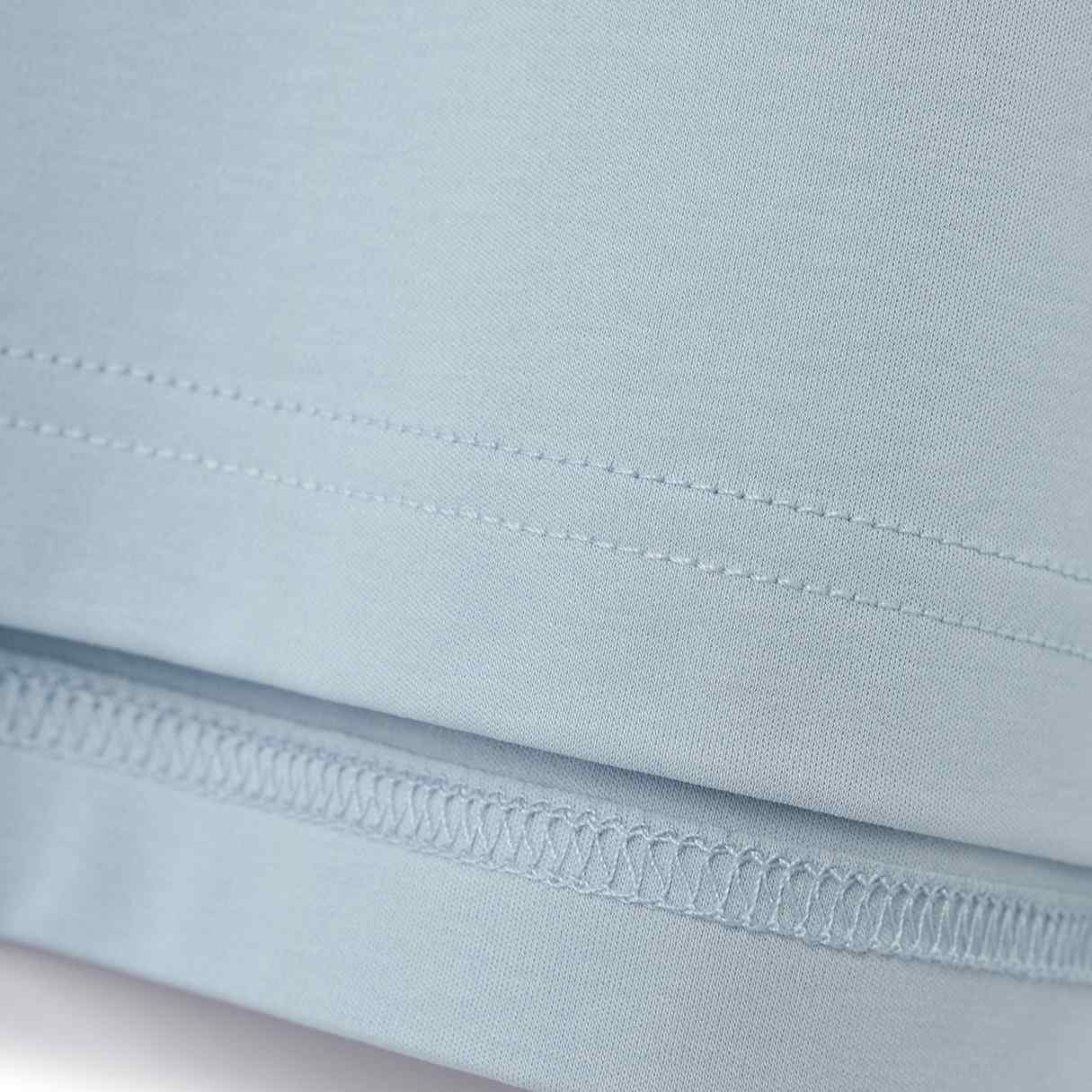 - This is a smart collar tee made from an interlock knit fabric composed of 65% cotton, 30% modal, and 5% mulberry silk. It features a crew neck, short sleeves, and a slim fit. The t-shirt also has an embroidery detail. .