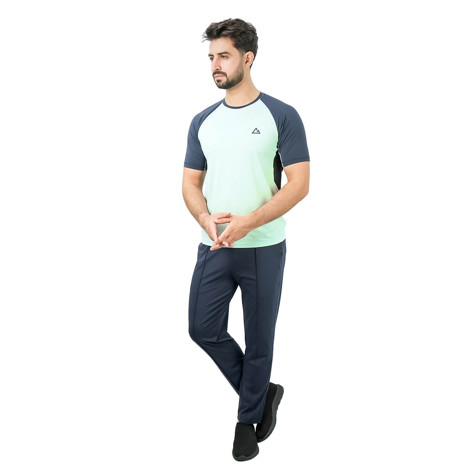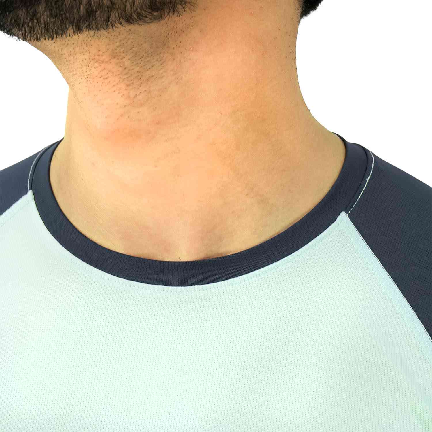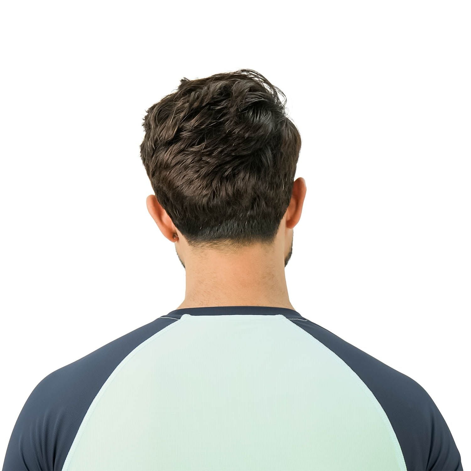 • Engineered for performance, this active fit tee is crafted from a high-quality stretch jacquard, warp-knitted fabric. It's designed to move with you, making it ideal for any workout or active lifestyle. The t-shirt features a classic crew neck, short sleeves, and dynamic color-blocking details for a modern, sporty look..