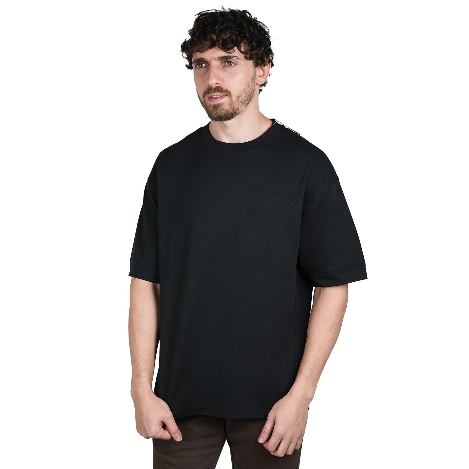 - A modern staple from the Texture Tee collection, this t-shirt is defined by its unique fabric and contemporary silhouette. It features a relaxed oversize fit for on-trend comfort, a classic crew neck, and short sleeves. Crafted from a distinctive 200gm/m² jacquard knit, the fabric is a premium blend of cotton and Sorona polyester, offering a soft feel with a sophisticated, subtle texture. The piece-dyed reactive finish ensures rich, fade-resistant color.