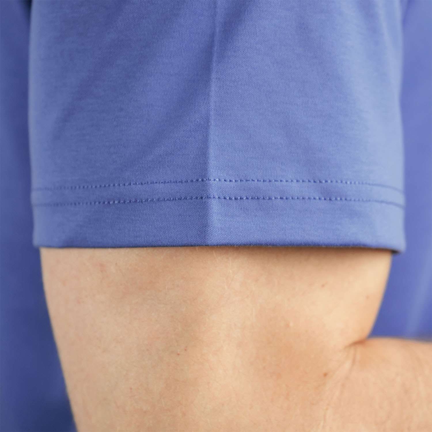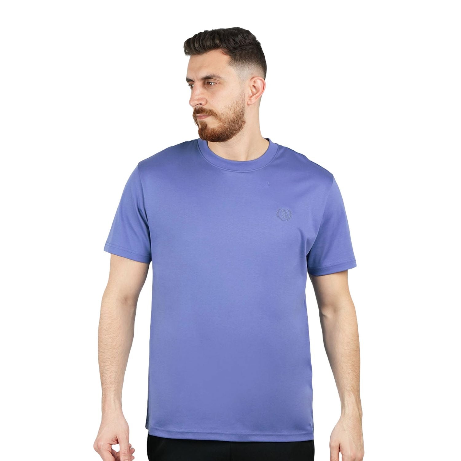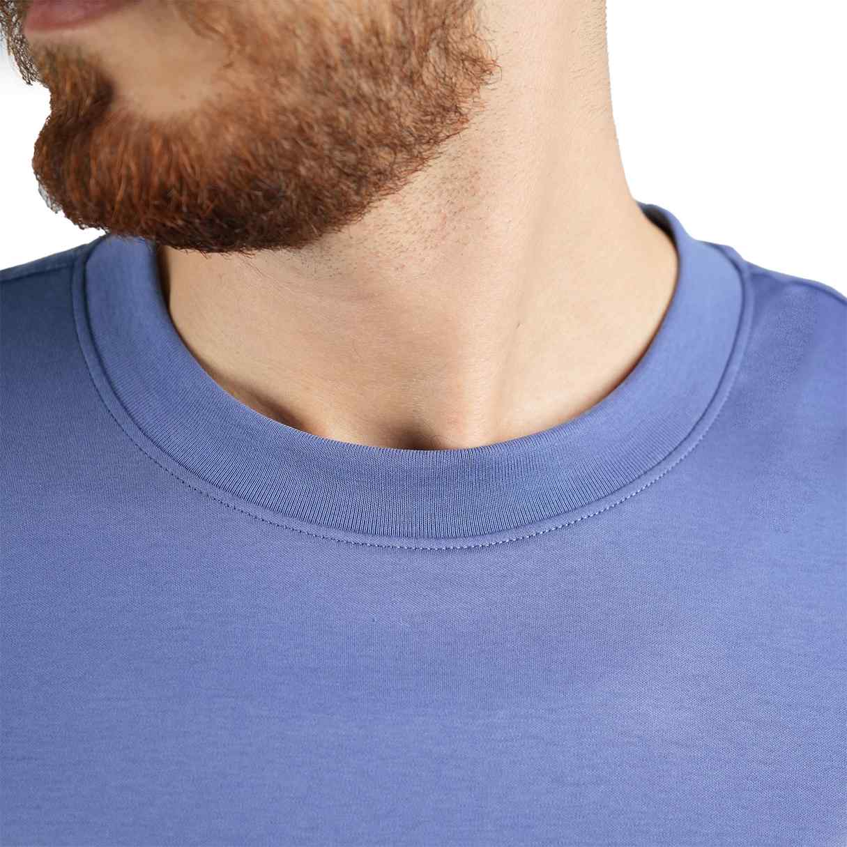 - This t-shirt is made from 100% cotton interlock fabric, known for its smooth, soft, and substantial feel. It features a classic crew neck and short sleeves.
