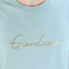 The standout feature is the elegant Giordano signature print on the chest, a simple yet sophisticated detail that adds a touch of branded style to the solid design. This versatile tee is ideal for wearing on its own with jeans or shorts, or as a foundational layer under a jacket or shirt for a more put-together look.