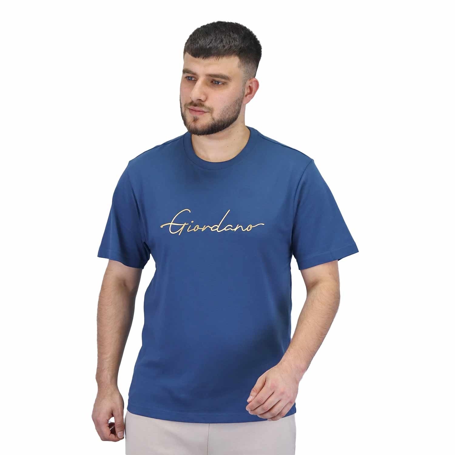 Men's Giordano Slim Fit Tee: Signature Print, 100% Cotton Jersey