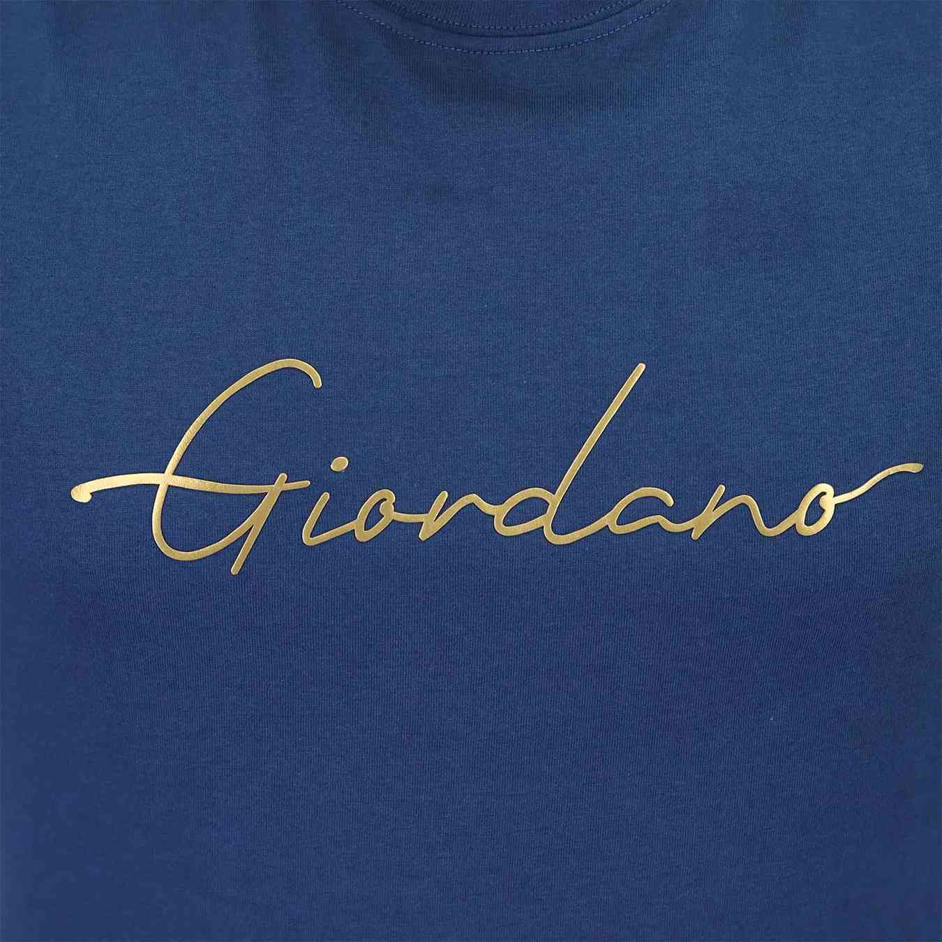 The standout feature is the elegant Giordano signature print on the chest, a simple yet sophisticated detail that adds a touch of branded style to the solid design. This versatile tee is ideal for wearing on its own with jeans or shorts, or as a foundational layer under a jacket or shirt for a more put-together look.