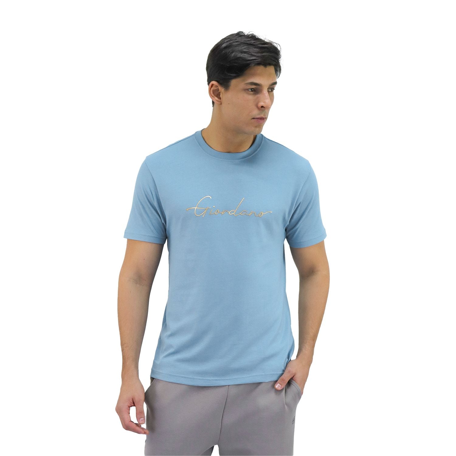 Men's Giordano Slim Fit Tee: Signature Print, 100% Cotton Jersey - Blue