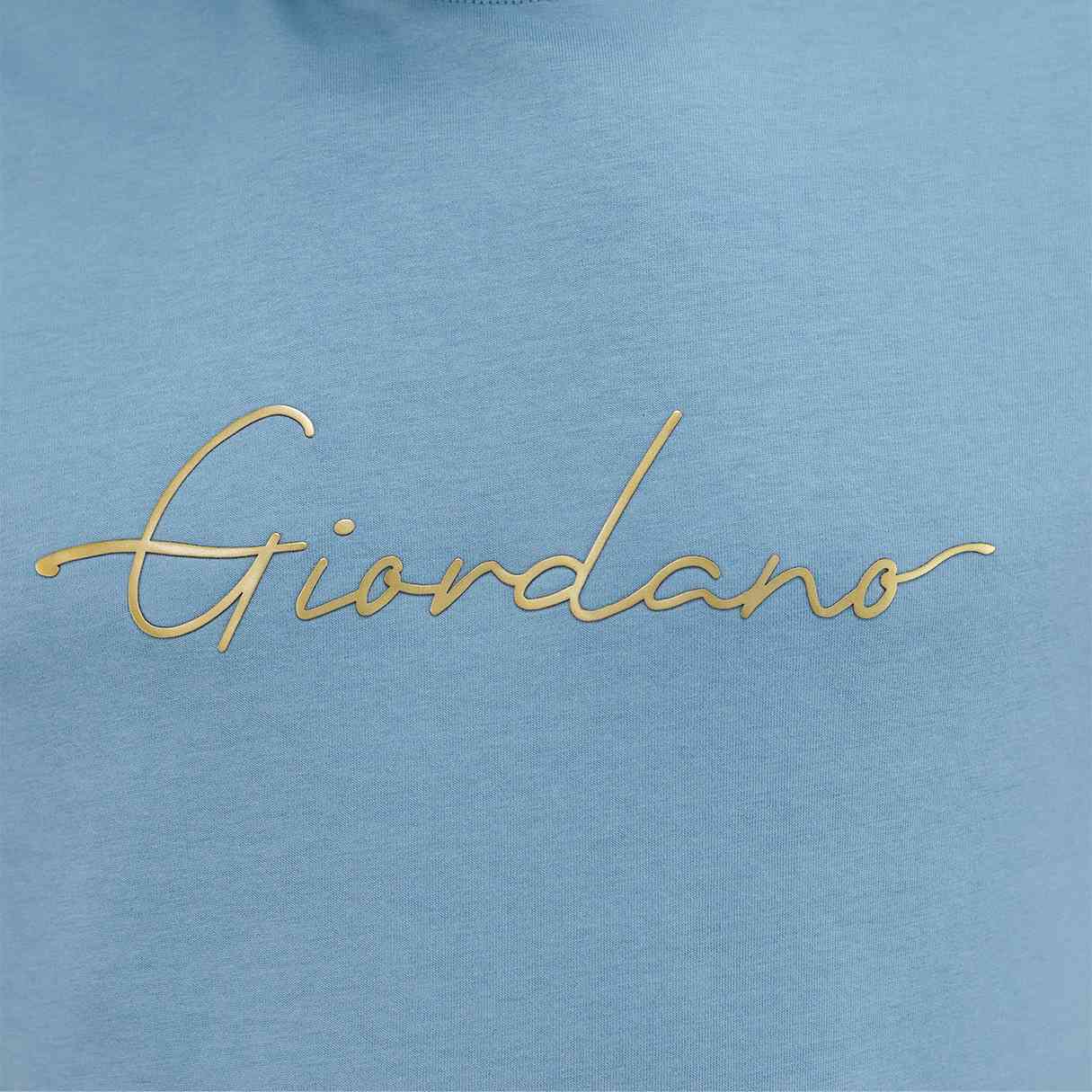 The standout feature is the elegant Giordano signature print on the chest, a simple yet sophisticated detail that adds a touch of branded style to the solid design. This versatile tee is ideal for wearing on its own with jeans or shorts, or as a foundational layer under a jacket or shirt for a more put-together look.