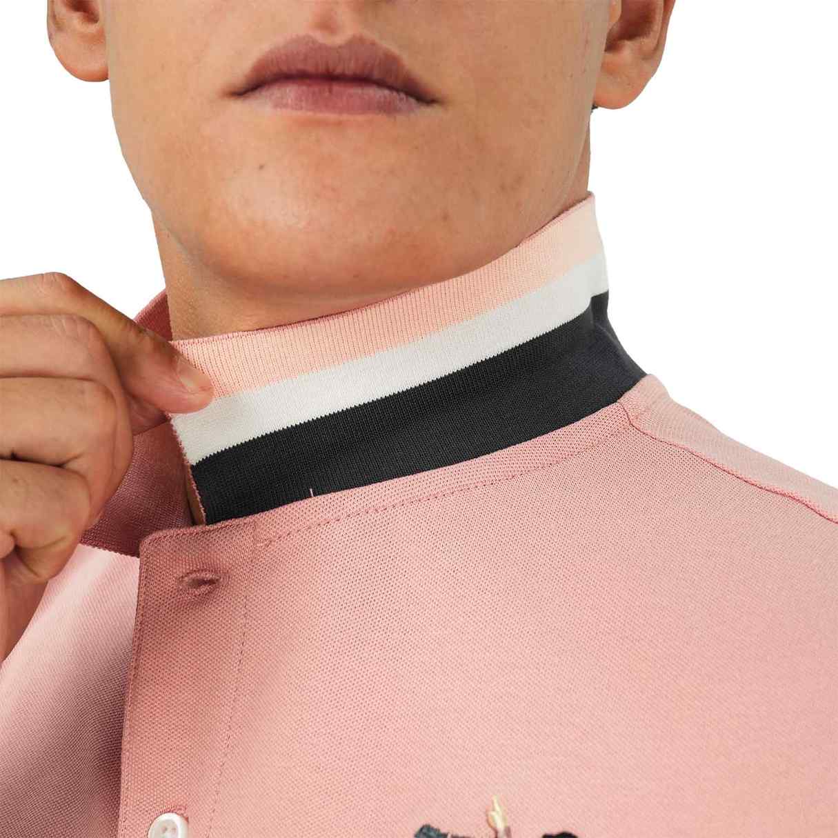 • A classic men's slim-fit polo shirt made from comfortable pique cotton, featuring a flat knit collar, short sleeves, and subtle embroidery. .
