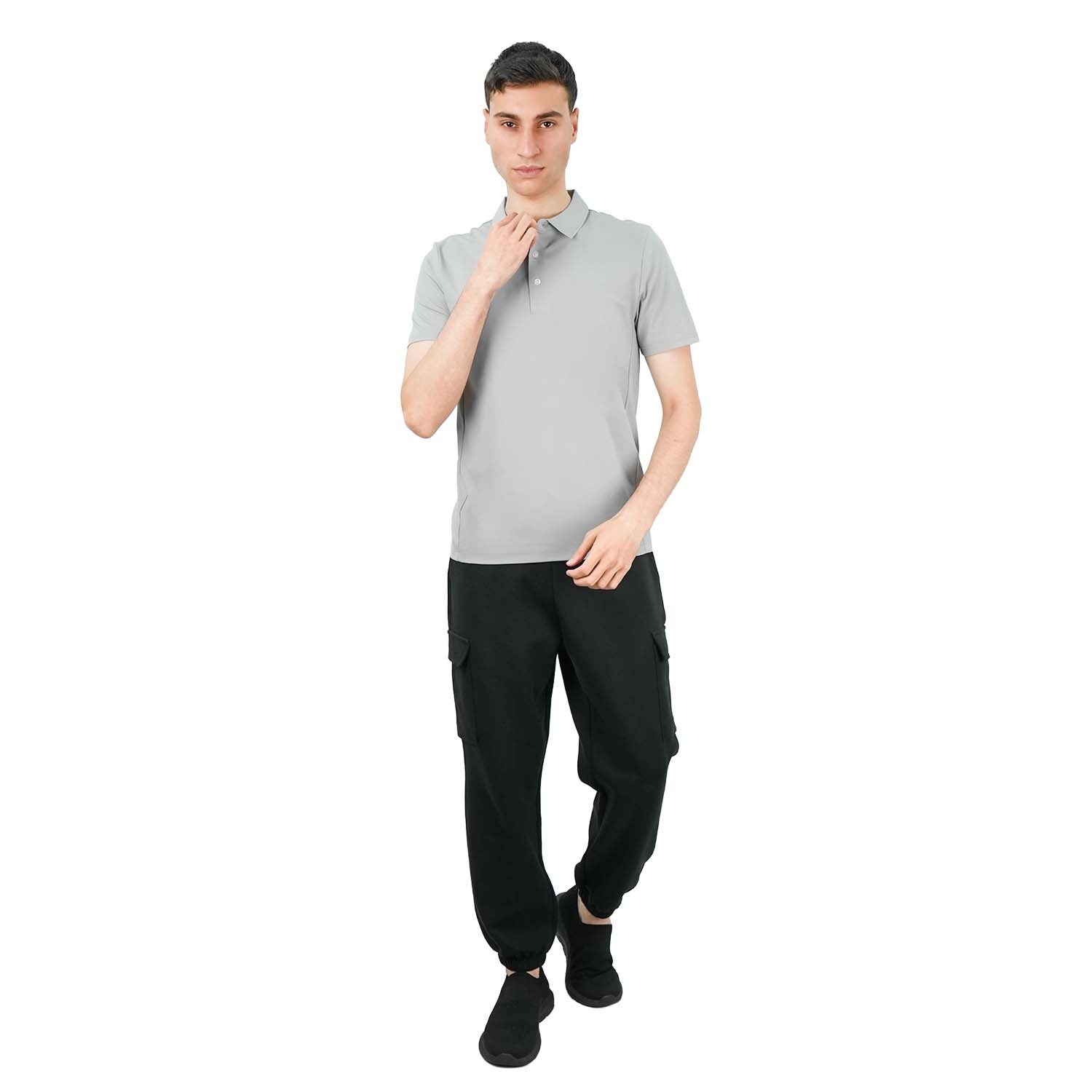 - Experience modern comfort with this easy-care polo shirt, designed for a sleek and contemporary look. It is crafted from a soft interlock knit fabric that offers a smooth feel and excellent drape. This polo features a distinctive knit collar with an open placket, short sleeves, and is finished with a piece-dyed reactive process..