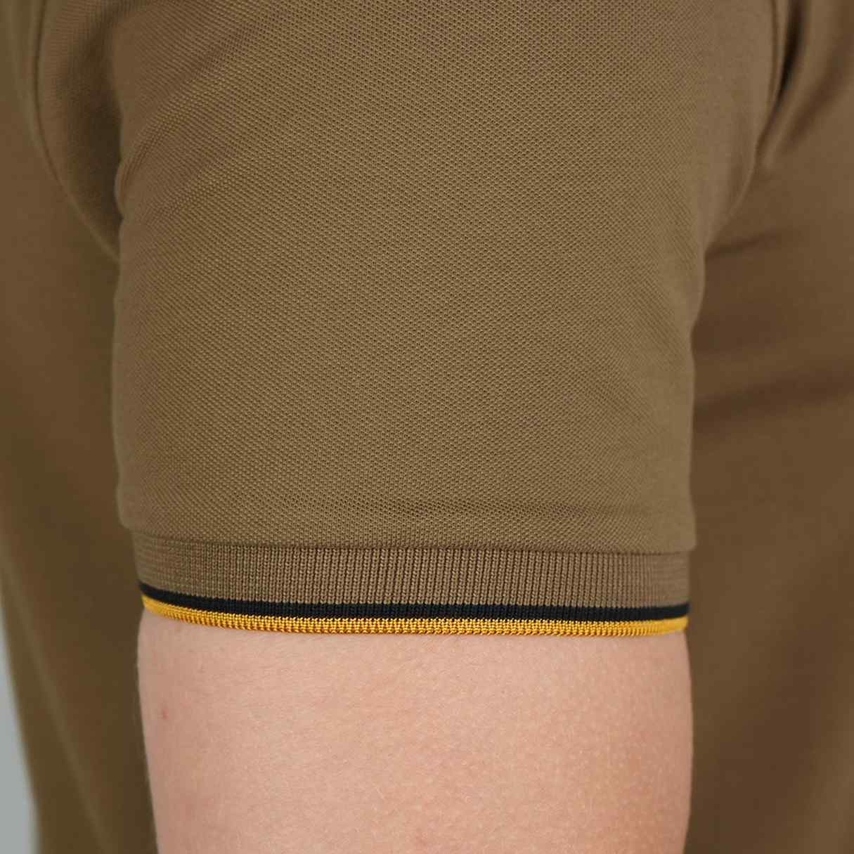 - The polo is constructed from a blend of 97% Cotton and 3% Lycra. This combination offers the natural comfort, breathability, and softness of cotton, enhanced by the stretch, shape retention, and improved fit provided by Lycra . The polo shirt is designed with a Slim Fit, offering a contemporary, tailored silhouette that sits closer to the body..