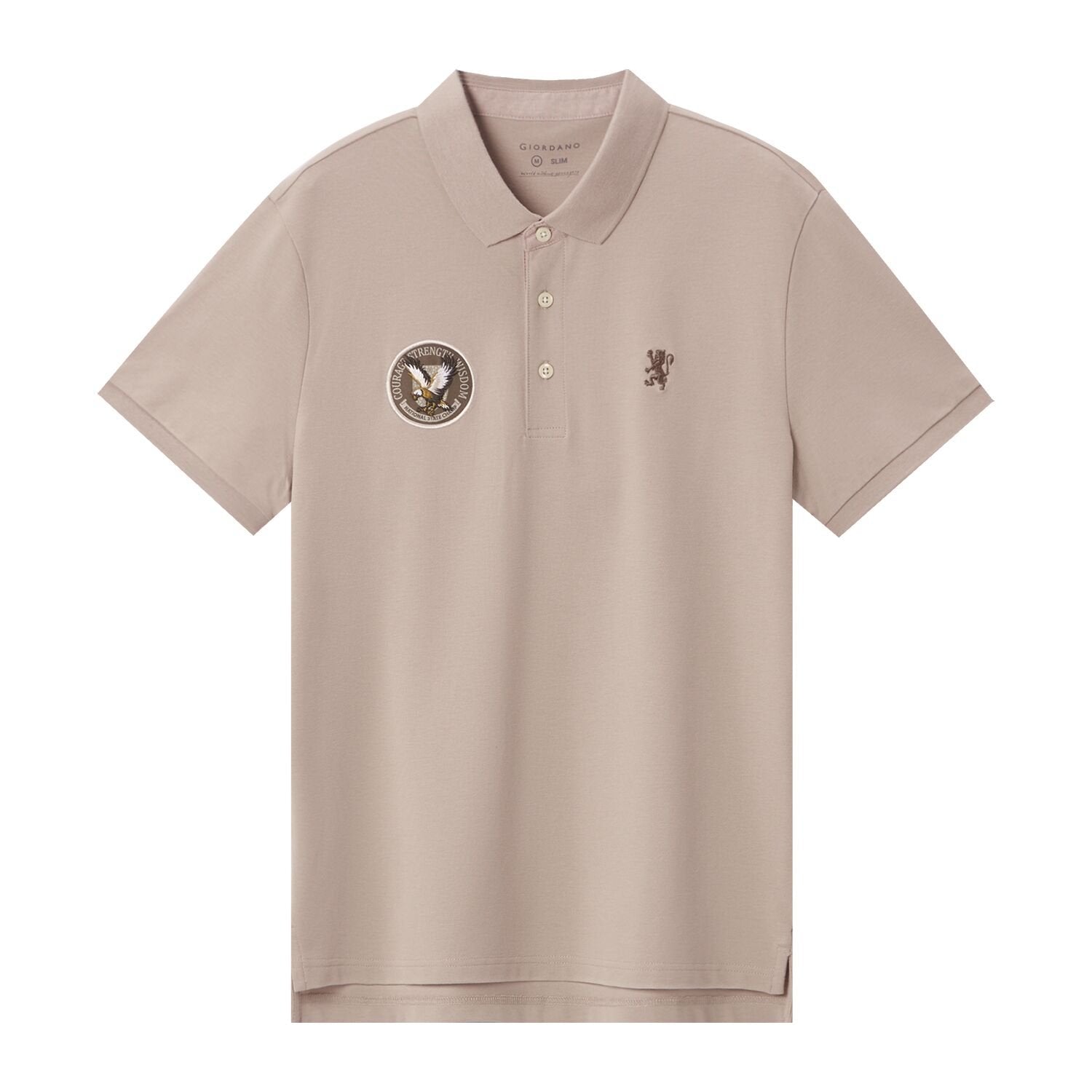 - Men's slim fit short sleeve pique polo shirt with a flat knit collar and embroidery, made from a cotton-lycra blend..