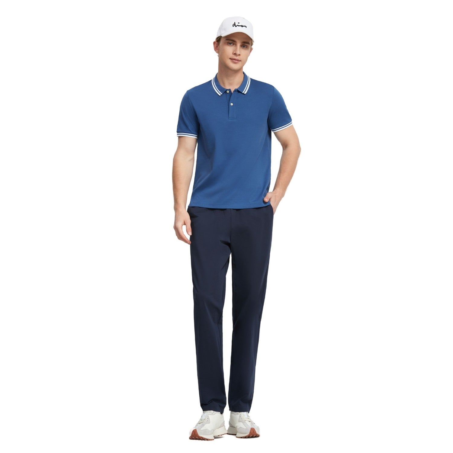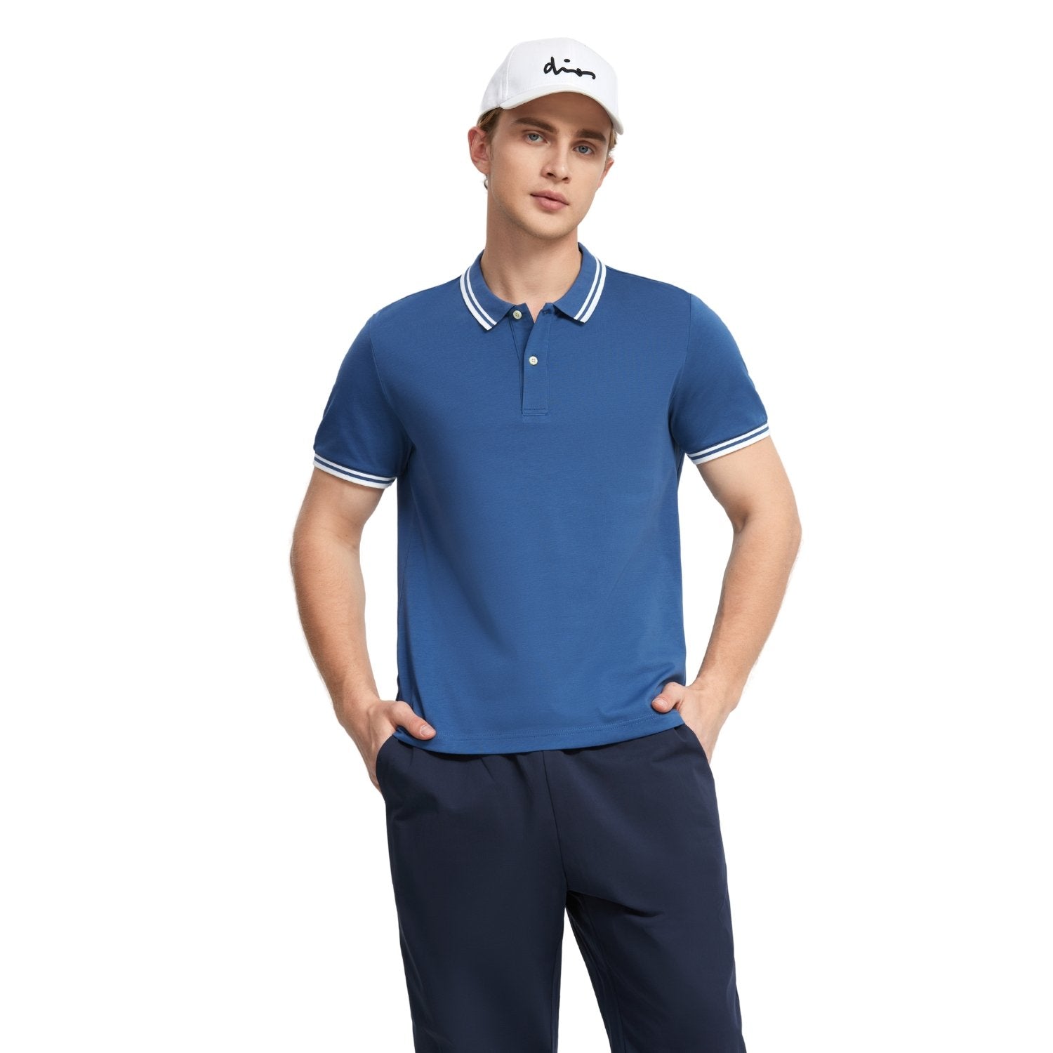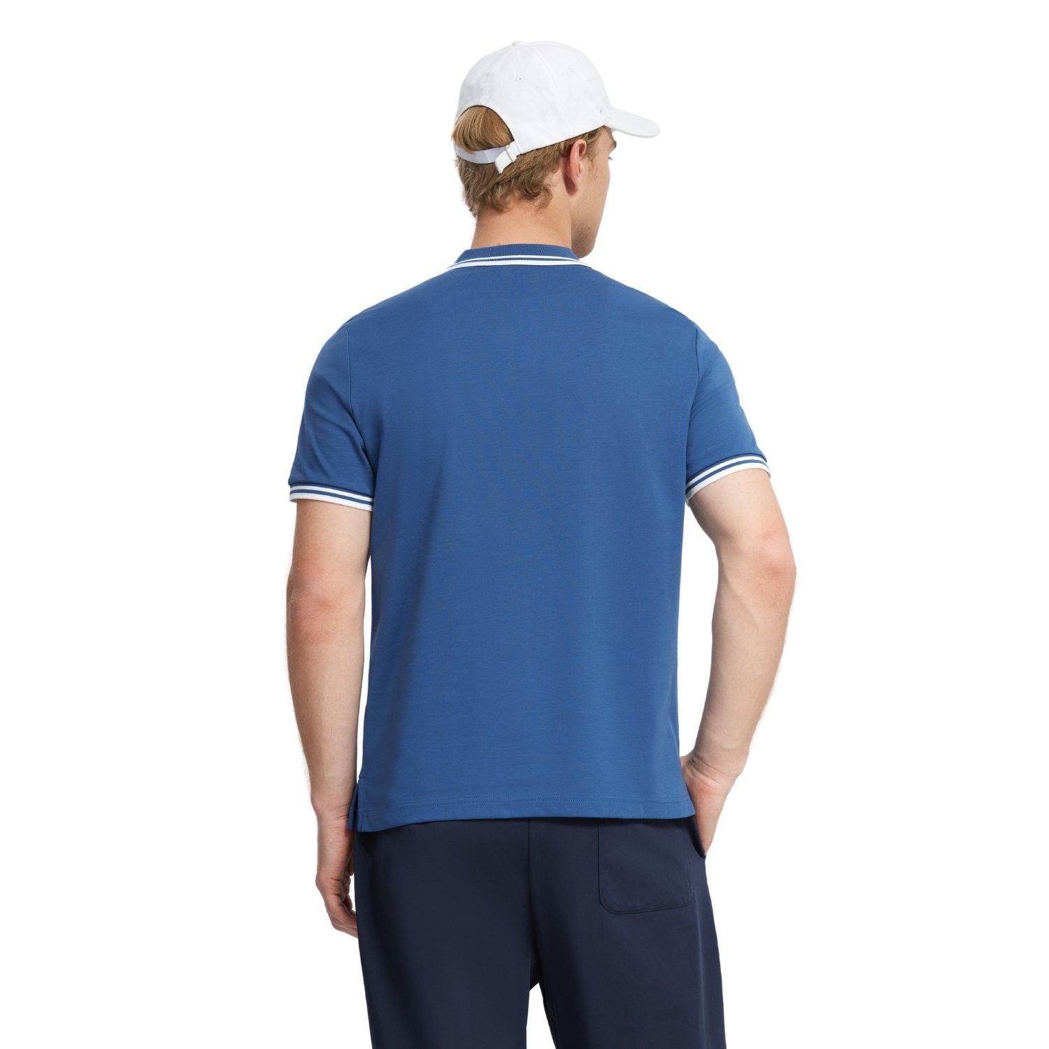- A comfortable and stylish men's polo with a modern Regular fit, made from a breathable cotton-polyester pique blend. It features an embroidered design .