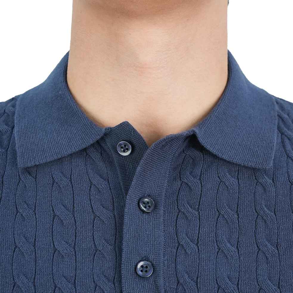Men's Regular Fit Short Sleeve Cable-Knit Polo Sweater - Blue
