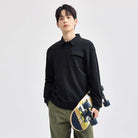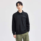 Men's Long Sleeve Patch Pocket Solid Polo - Black
