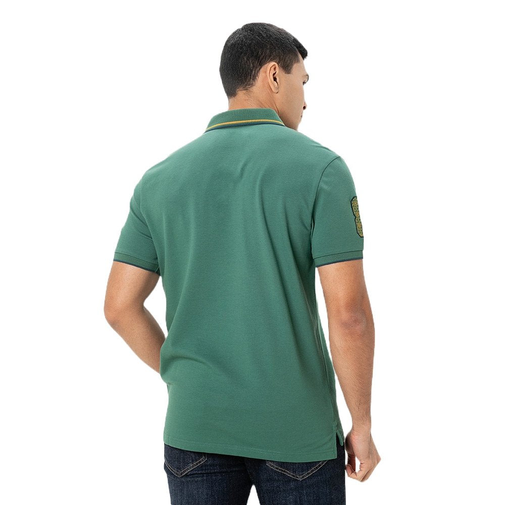 - A classic men's slim-fit polo shirt made from comfortable pique cotton, featuring a flat knit collar, short sleeves, and subtle embroidery. .