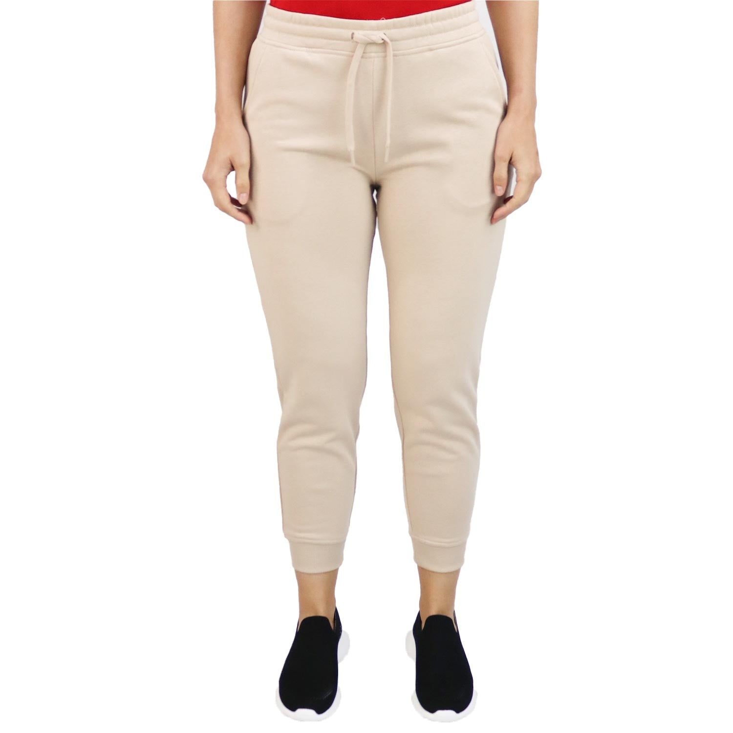 - These are women's comfortable jogger pants made from a cotton and polyester French terry fabric. They feature a mid-rise waist and a regular fit with an elastic waistband, perfect for lounging or casual activitie.