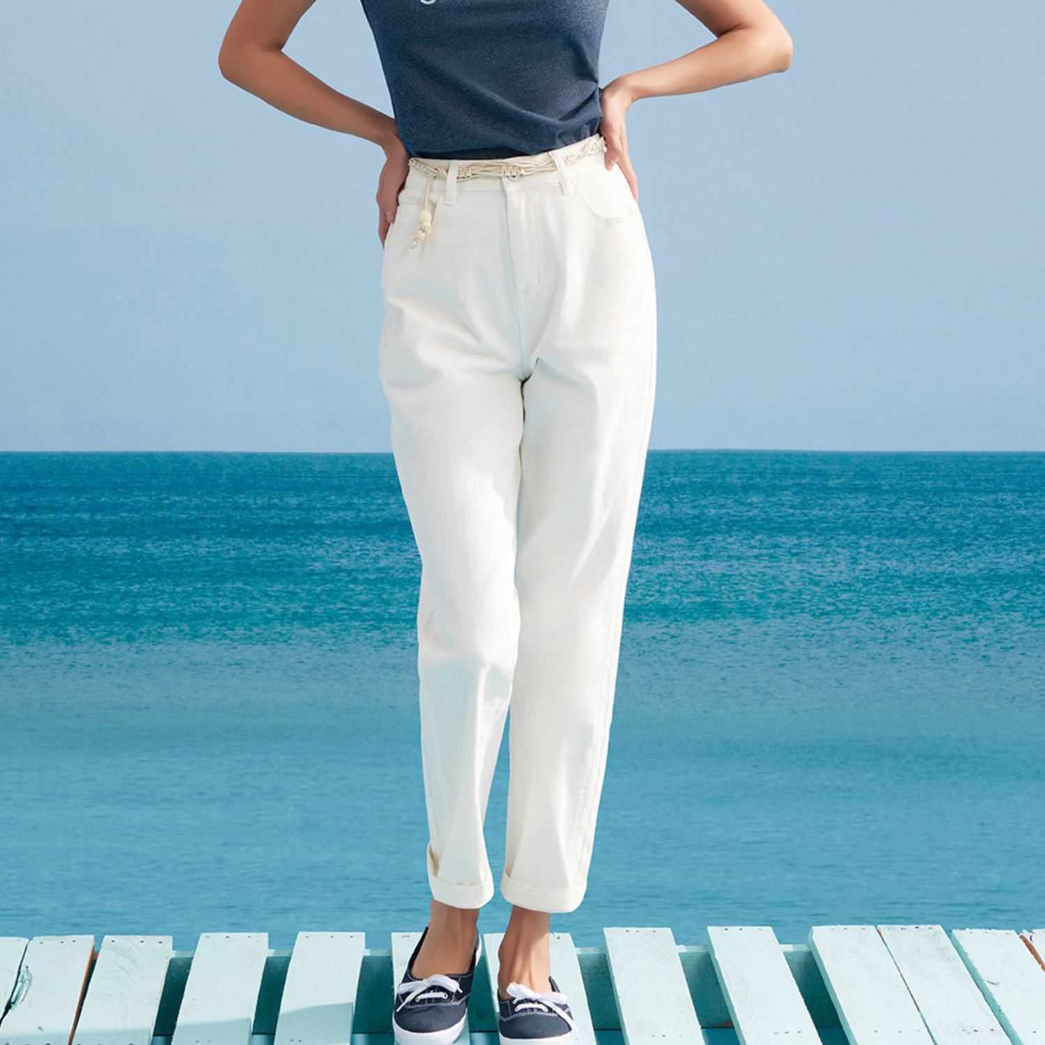 • Style: Women's High Waist Relax Taper White Denim Jeans