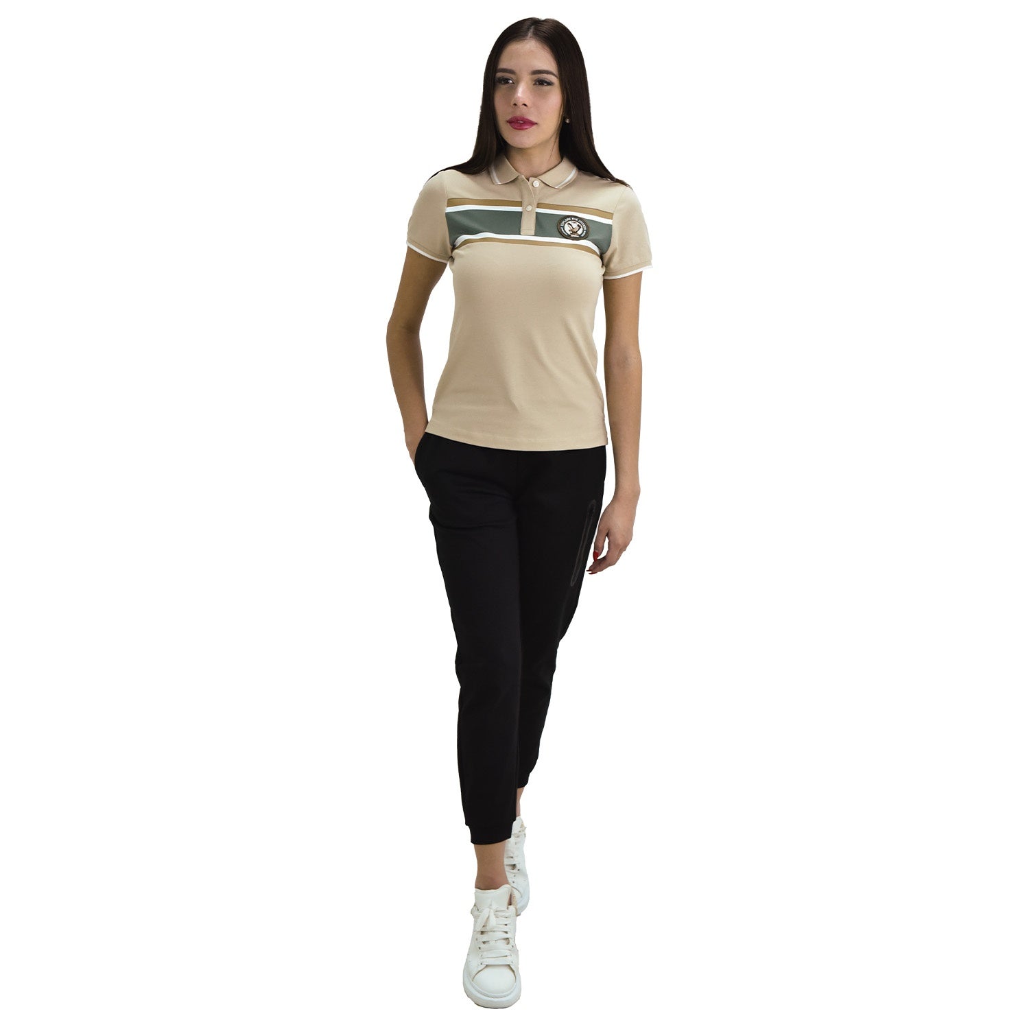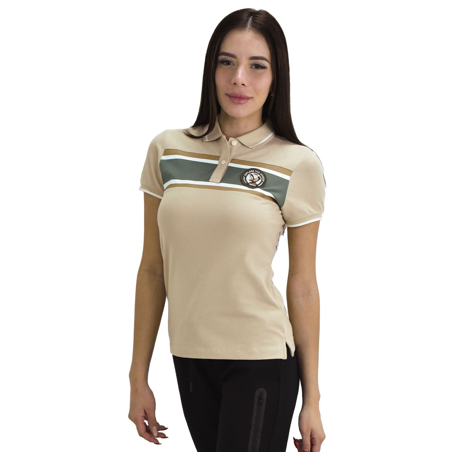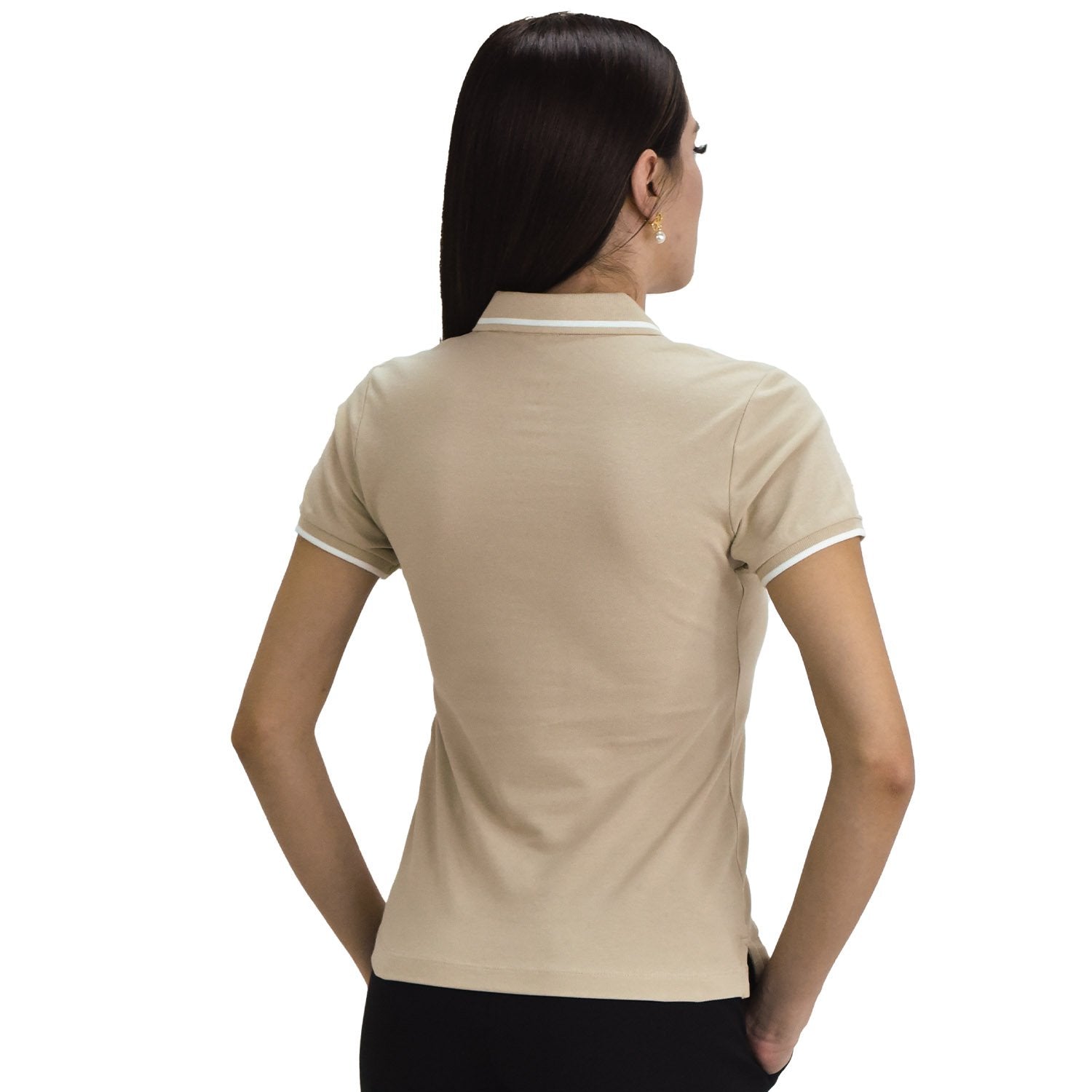 Women Pique Flat Knit Collar Short Sleeve Polo - Khaki