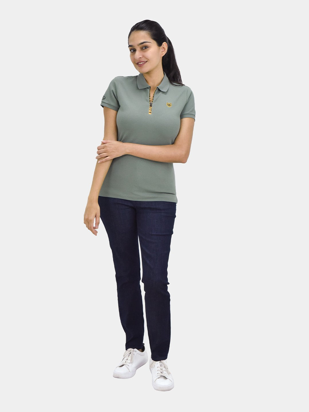 Women's Short Sleeve Classic Slim Fit Bold Polo - Green