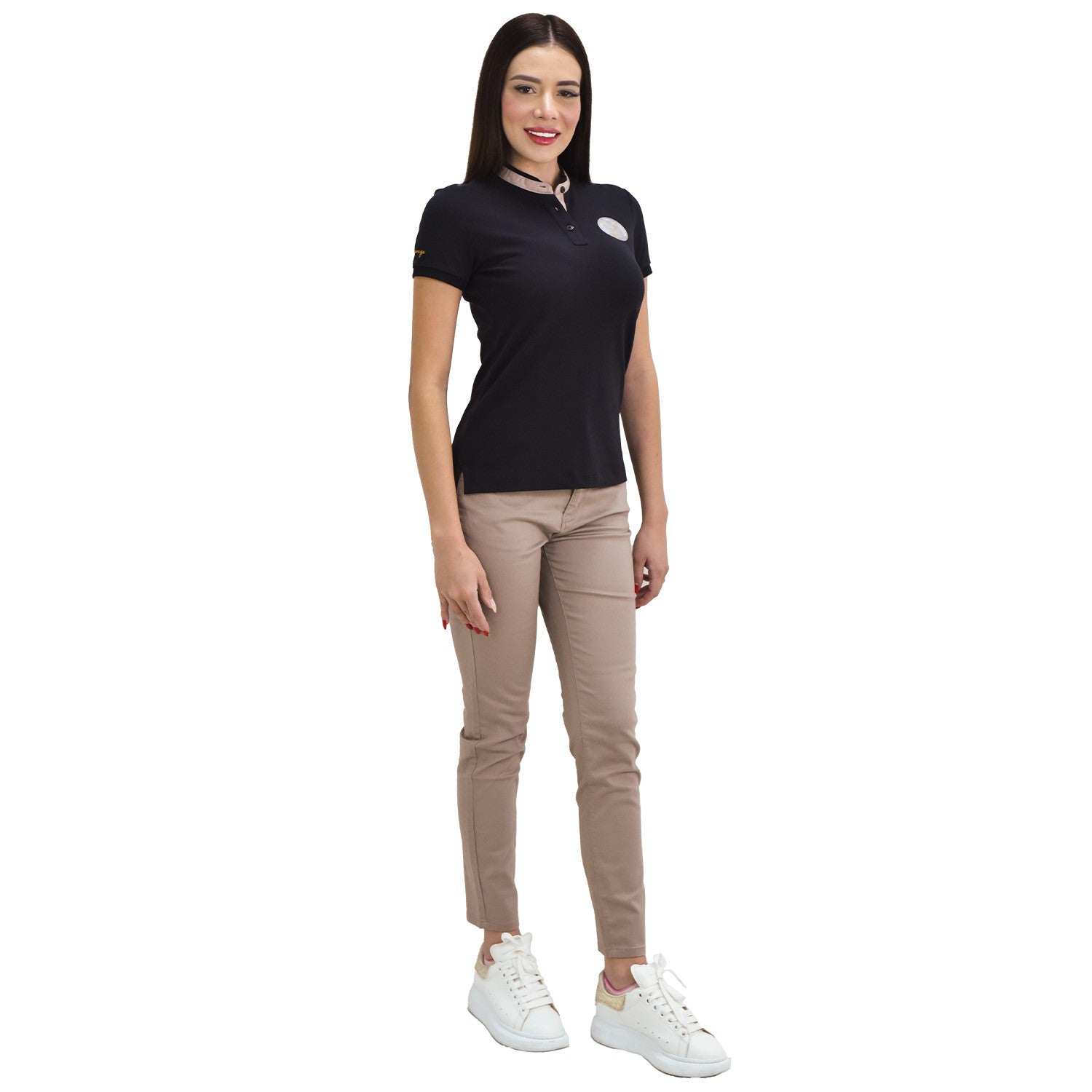 Women Pique Flat Knit Collar Short Sleeve Polo