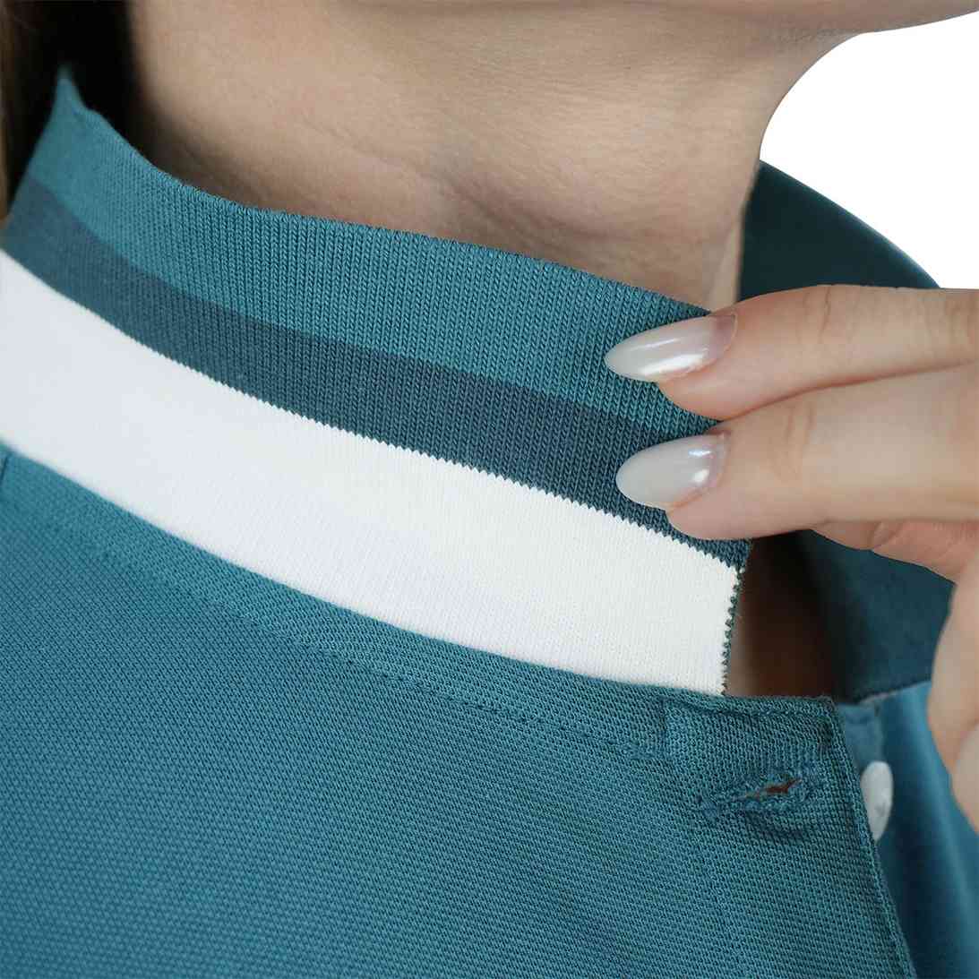 - Women's polo shirt made from pique knit fabric (97% cotton, 3% Lycra)